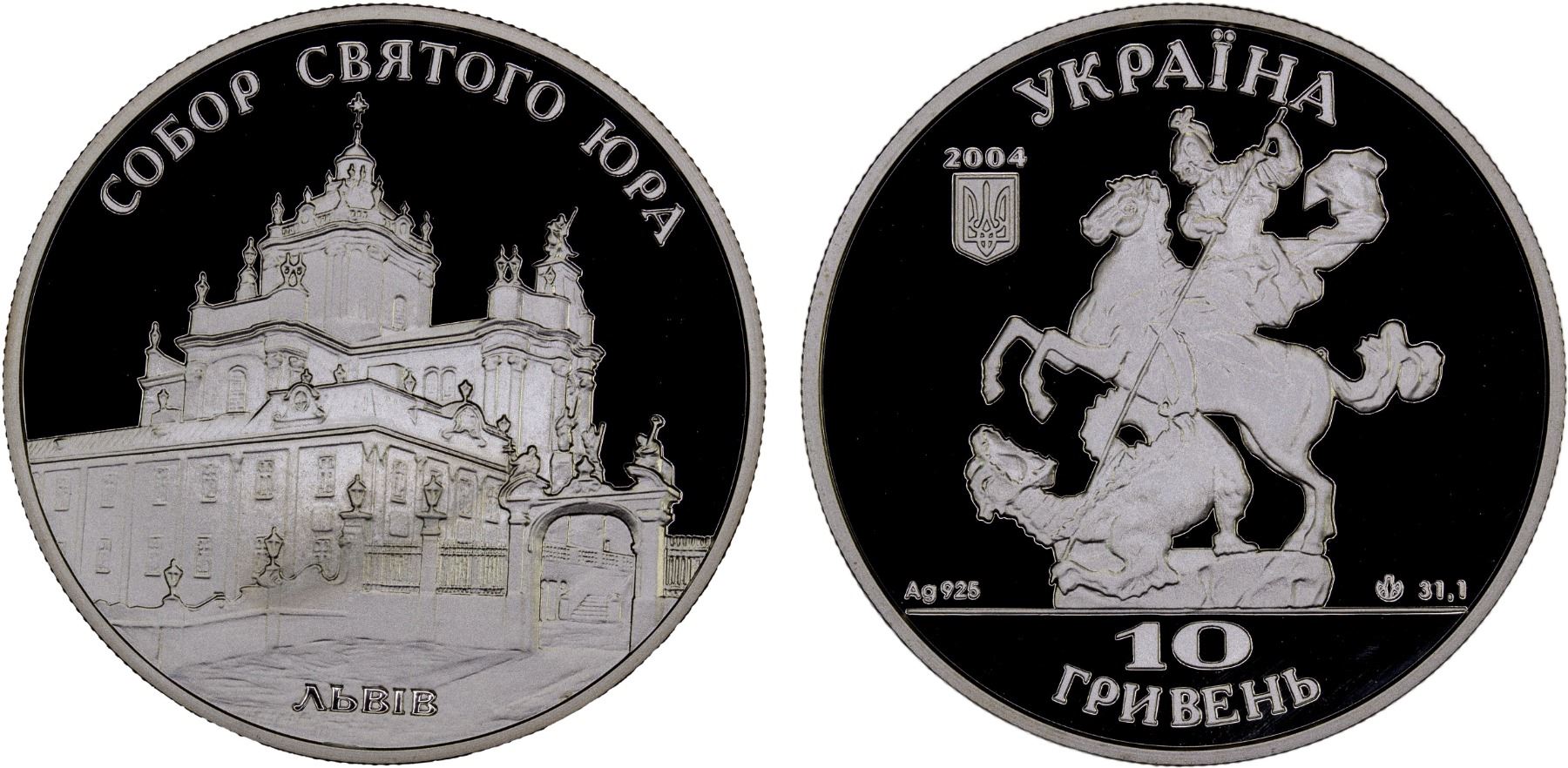 UKRAINE: Republic, AR 10 hryven, 2004, KM-340, Architectural Monuments of Ukraine Series – St. George's Cathedral, struck at the Ukrainian mint, Kyiv, with COA of issue, Proof.