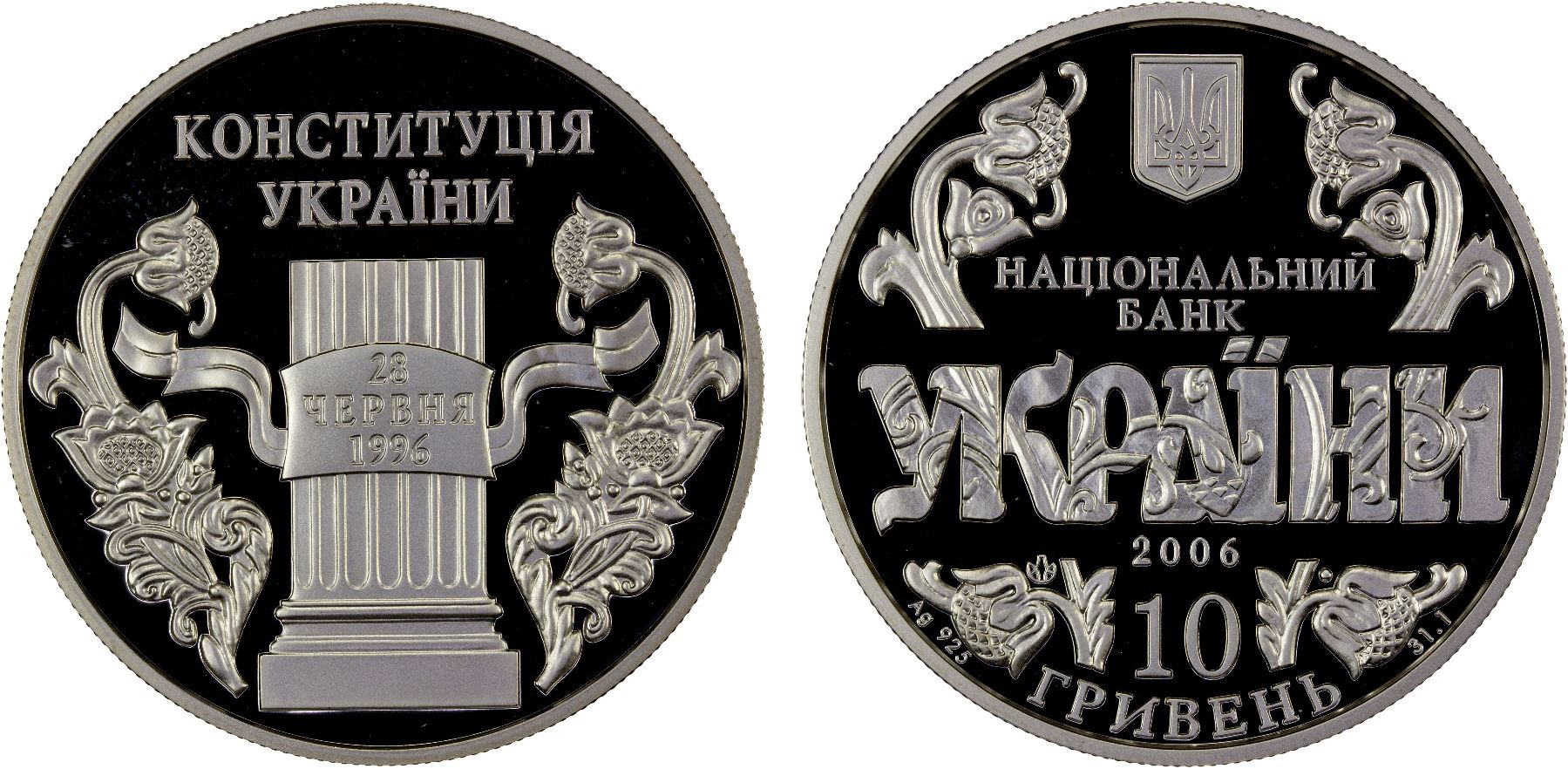 UKRAINE: Republic, AR 10 hryven, 2006, KM-410, 10th Anniversary of the Constitution of Ukraine, struck at the Ukrainian mint, Kyiv, with COA of issue, Proof.