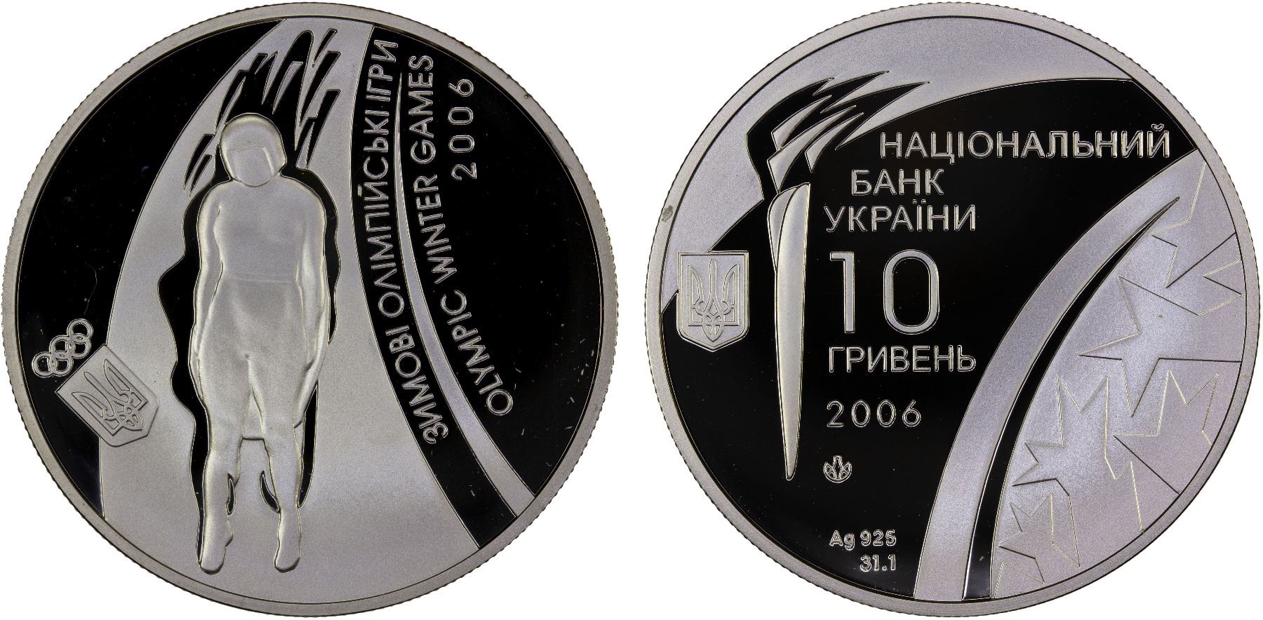 UKRAINE: Republic, AR 10 hryven, 2006, KM-427, Winter Olympics Games Turin - Luge, struck at the Ukrainian mint, Kyiv, with COA of issue, Proof.