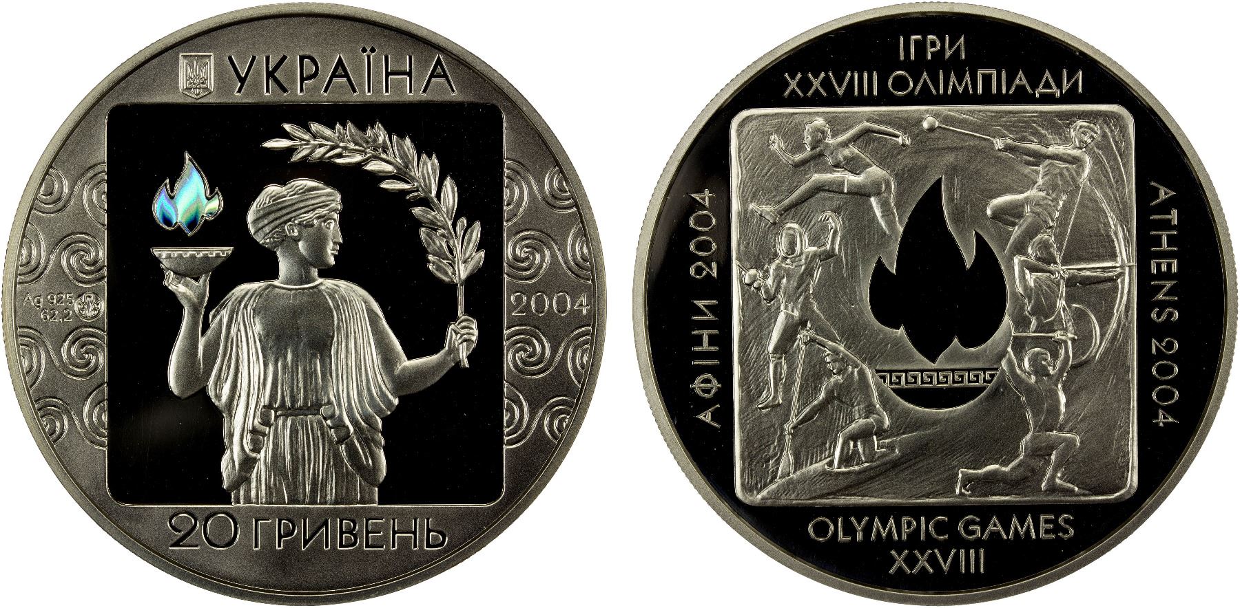 UKRAINE: Republic, AR 20 hryven, 2004, KM-344, XXVIII Olympic Games - Athens, struck at the Ukrainian mint, Kyiv, with COA of issue, contains two troy ounces of pure silver, Proof.