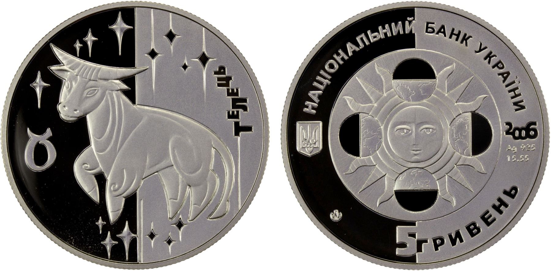 UKRAINE: Republic, AR 5 hryven, 2006, KM-405, Signs of the Zodiac Series - Taurus, struck at the Ukrainian mint, Kyiv, with COA of issue, Proof.