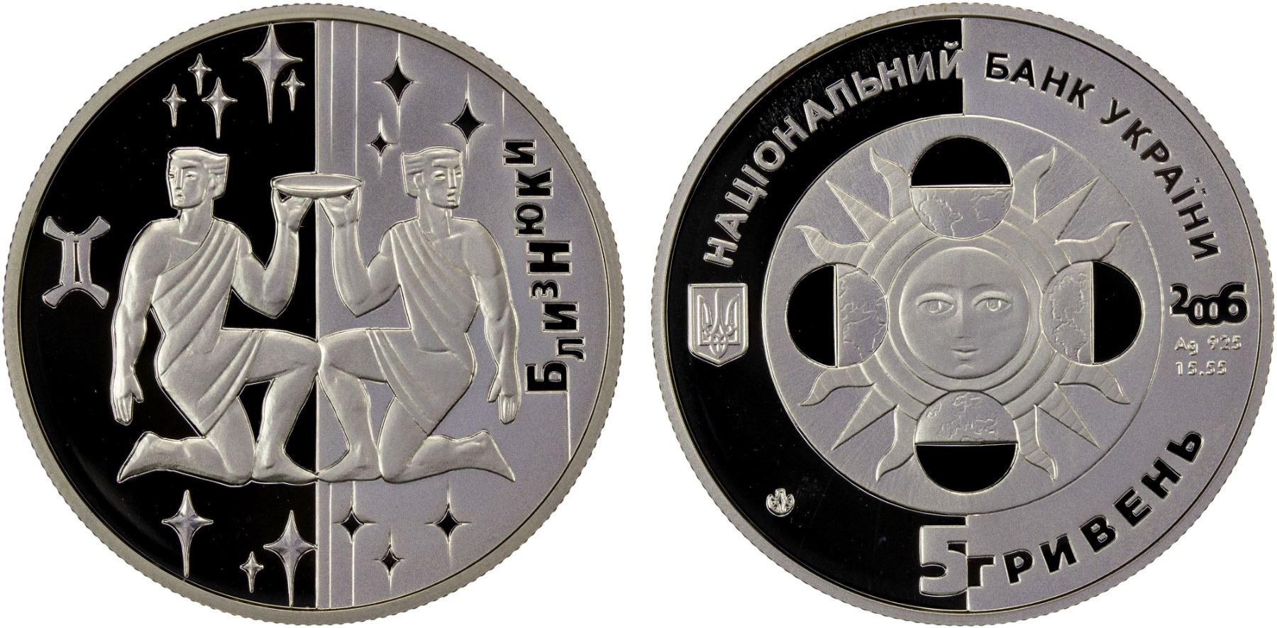 UKRAINE: Republic, AR 5 hryven, 2006, KM-407, Signs of the Zodiac Series - Gemini, struck at the Ukrainian mint, Kyiv, with COA of issue, Proof.