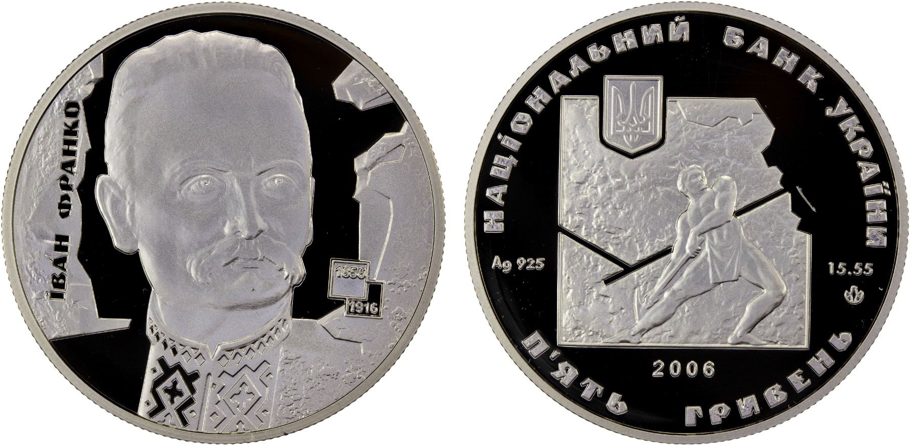 UKRAINE: Republic, AR 5 hryven, 2006, KM-418, Outstanding Personalities of Ukraine – 150th Anniversary of the Birth of Ivan Franko, struck at the Ukrainian mint, Kyiv, with COA of issue, Proof.