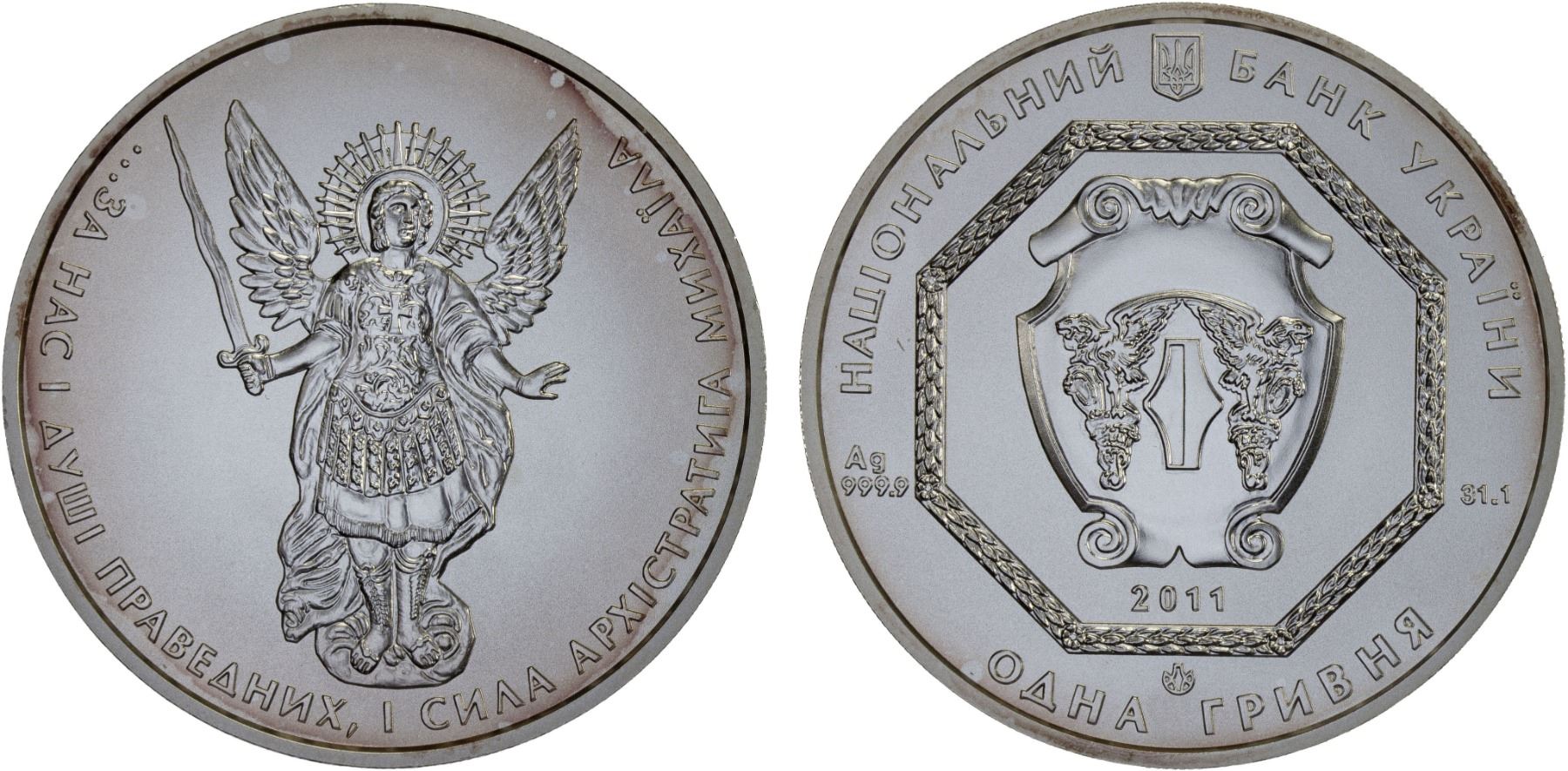 UKRAINE: Republic, AR hryvnia, 2011, KM-654, Silver Bullion Series - Archangel Michael, struck at the Uranian mint, Kyiv, Brilliant Unc.