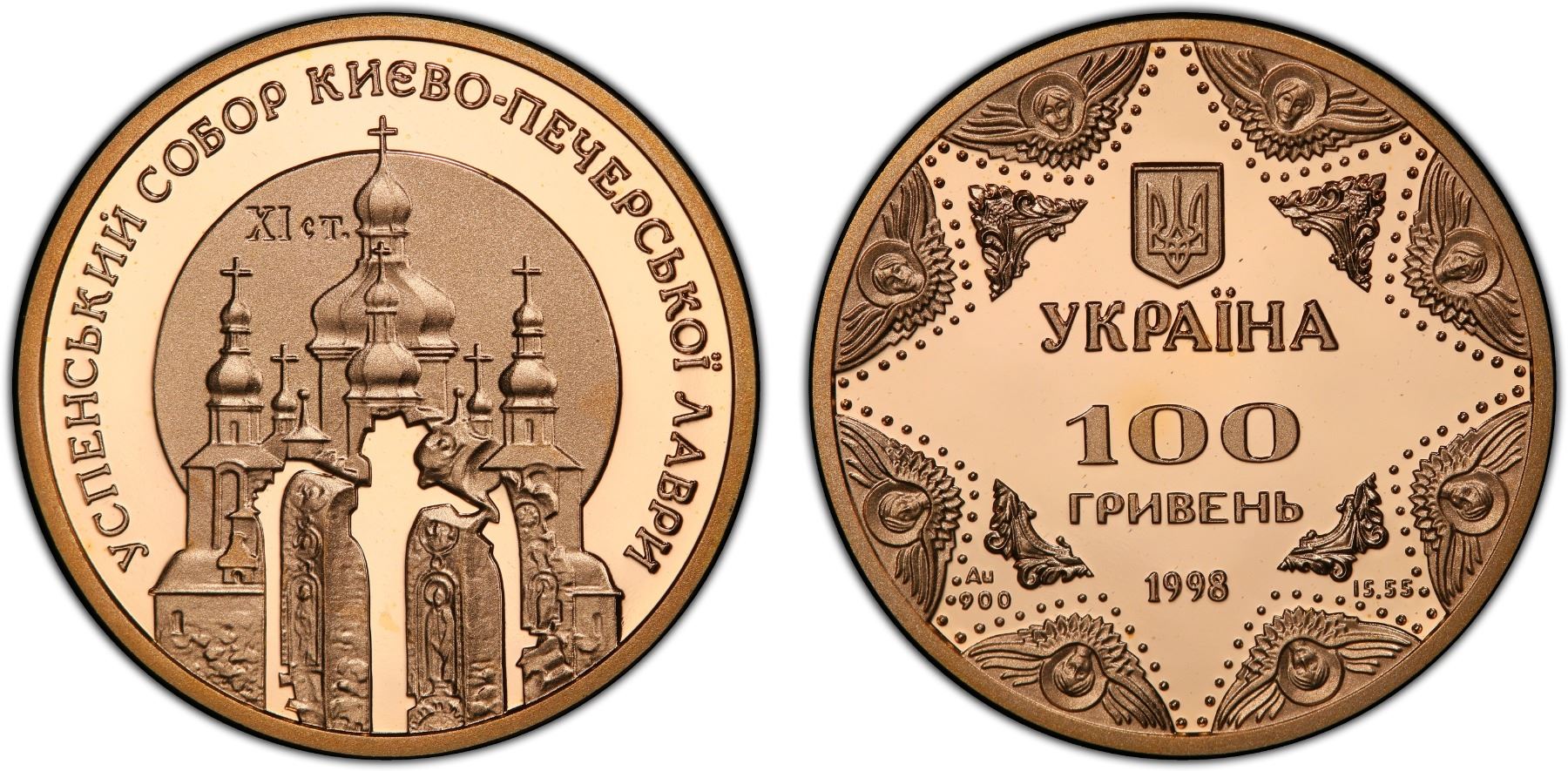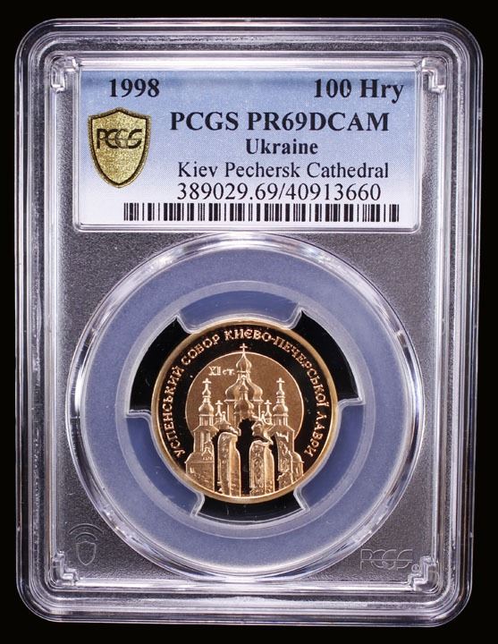 UKRAINE: Republic, AV 100 hryven, 1998, KM-71, Zahreba-3M.100.4, Spiritual Treasures of Ukraine Series - Kyiv-Pechersk Assumption Cathedral, struck at the Ukrainian mint, Kyiv, PCGS graded PF69 Deep Cameo.