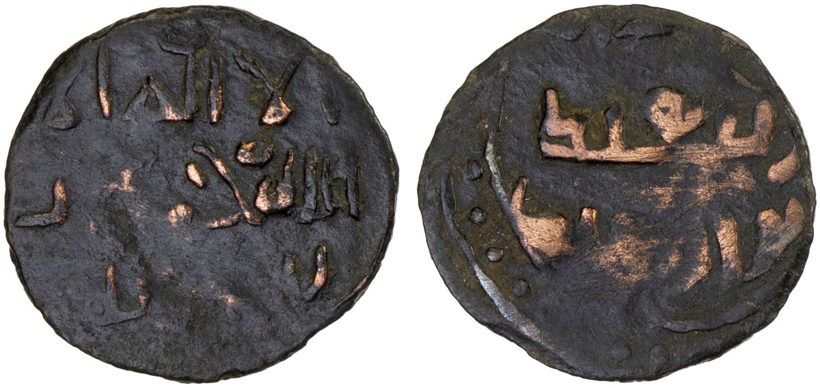 UMAYYAD: AE fals (0.52g), NM, ND, A-205S, standard kalima // uncertain name, something like rasad / bin ar....nd; few spots of weakness, VF, probably RRR.