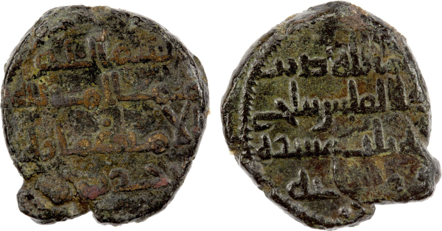 UMAYYAD: AE fals (2.07g), Balkh, AH113, A-E197, with bism Allah at the top of both sides, citing the governor 'Umâra b. Harrîm on the obverse, the mint and date on the reverse; lovely strike and fully legible, second known example of this type and by far the finer of the two, VF, RRR. The only other known example will be sold in our eAuction 21, lot 383, clear obverse but without legible governor's name on reverse.
