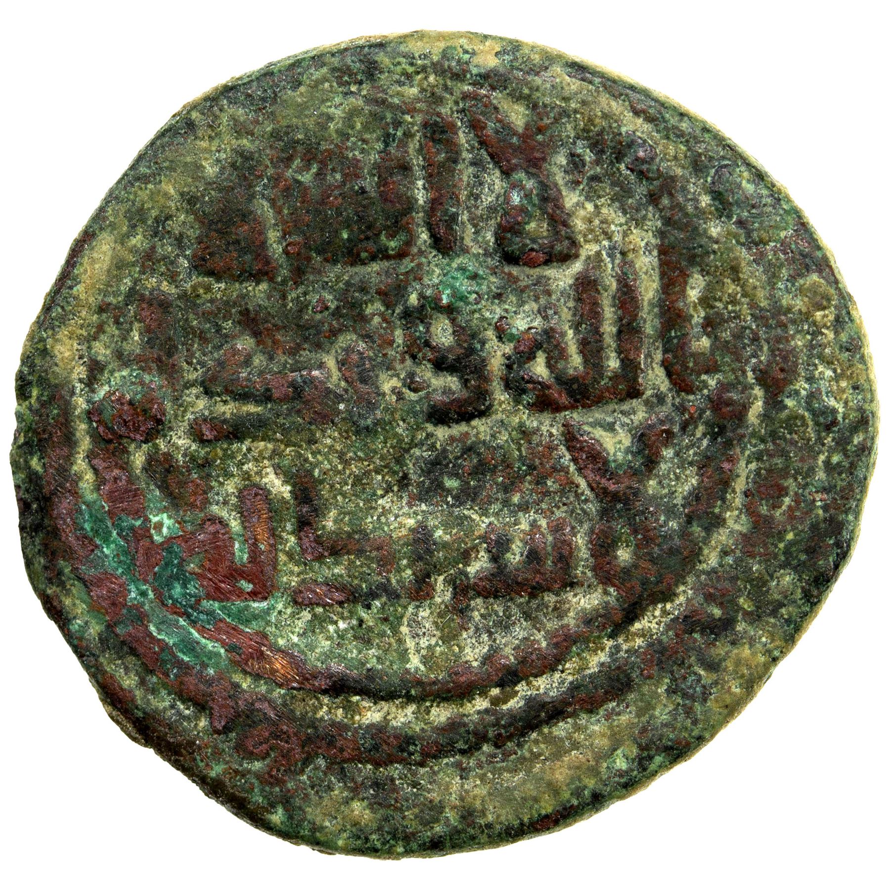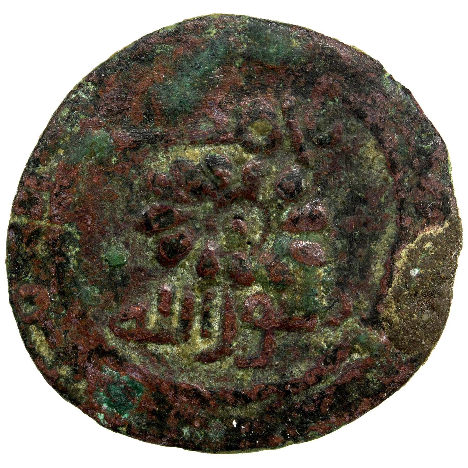 UMAYYAD: AE fals (2.30g), al-Mansura, ND, A-A204, kalima divided between obverse & reverse, citing on the reverse the governor Mansur, who is perhaps Mansur b. Jumhur al-Kalbi, governor of Sind circa AH130-134, porous surfaces, Very Good, RRR. The full reverse marginal text is "bism Allah duriba hadha'l-fils bi'l-mansura mimma amara bihi mansur", as it appears on Lot 254 in our Auction 37.