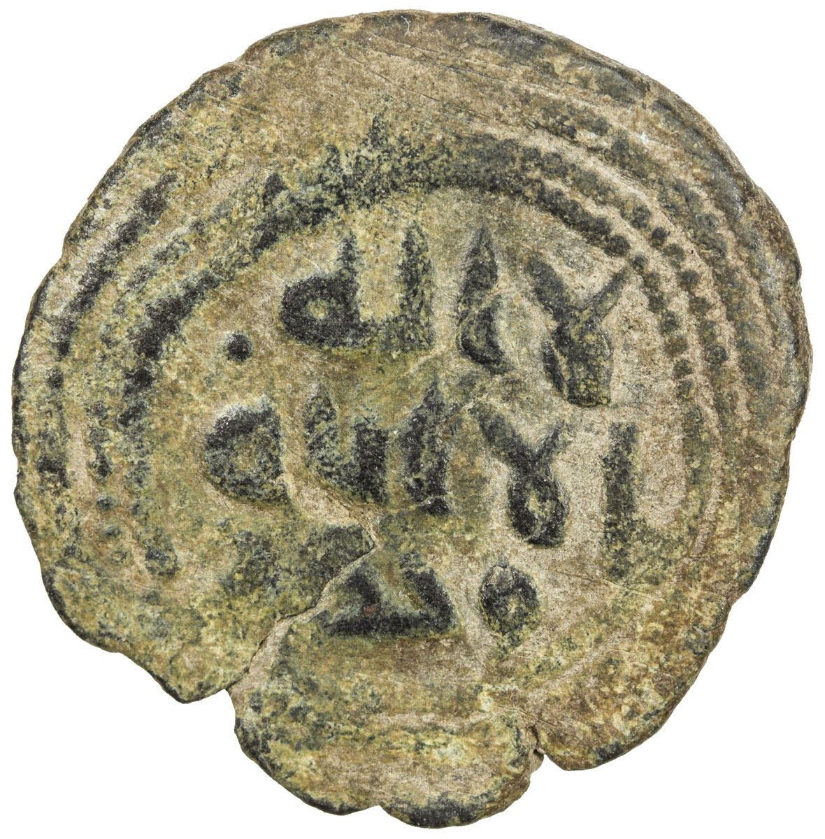 UMAYYAD: AE fals (3.14g), Baysan, ND (ca. 705-715), A-170, SNAT-261 (different dies), pellet after Allah on the reverse, rare Palestinian mint, VF, RR.