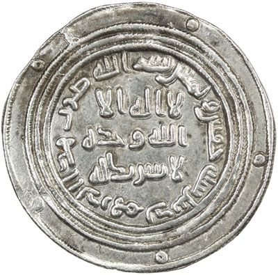 UMAYYAD: 'Abd al-Malik, 685-705, AR dirham (2.74g), Dabil (Dvin, in Armenia), AH85, A-126, Klat-286, superb stirke, almost perfectly centered, choice EF, R.