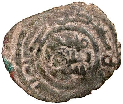 UMAYYAD: Anonymous, ca. 715-720, AE fals (4.00g) (Gha)zza, ND, A-A176, W-908. SNAT-—, Bone-2, same reverse die as W-908, thus confirming the mint name, of which only the last two letters are fully clear, some corrosion spots, pleasing specimen, Fine, RRR, from an American collection.  Ghazza is the second rarest of the Palestinian mints for the Umayyad copper coinage.