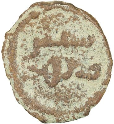 UMAYYAD: Anonymous, ca. 720-750, AE fals (1.15g), NM, ND, A-P206, Zeno-133424, sittin bi-dirham ("sixty to a dirham") on obverse, ja'iz ("current") on reverse, of eastern Khorasanian origin, decent strike, Fine to VF, RR.