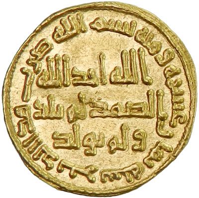 UMAYYAD: Hisham, 724-743, AV dinar (4.23g), NM (Dimashq), AH118, A-136, one tiny nick, almost invisible, EF to About Unc.