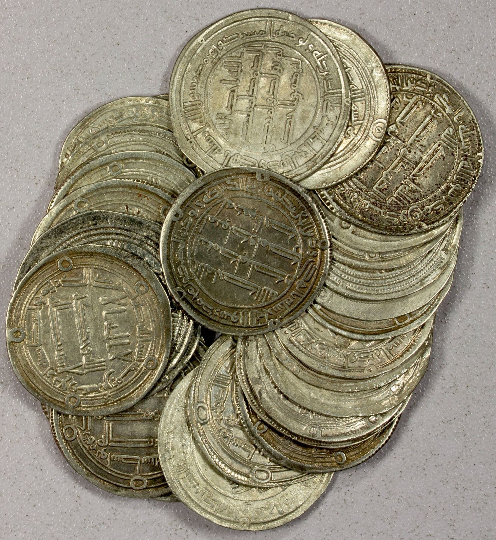 UMAYYAD: LOT of 27 silver dirhams, all from the mint of Wasit, mostly with all dated AH121-128 plus 90, 92, 94, 105, 110, 113, and 119; all VF or better, with several EF; a lovely group; retail value $850, lot of 27 pieces.