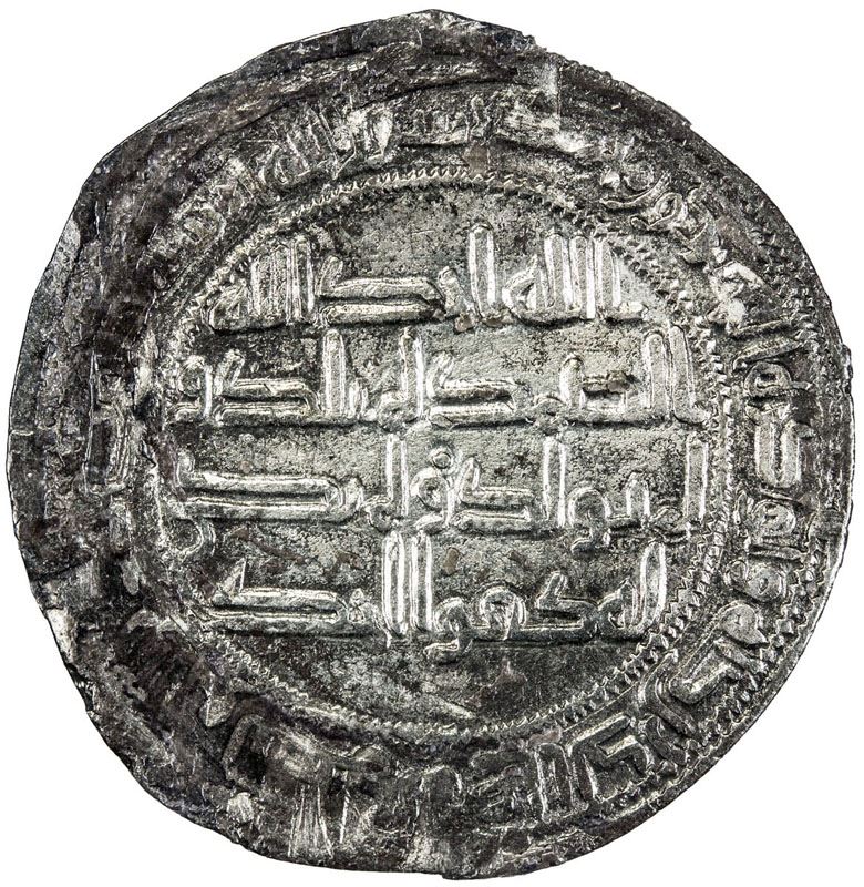 UMAYYAD: Marwan II, 744-750, AR dirham (2.46g), al-Bab, AH128, A-142, Klat-154, much surface porosity, some adhesions towards the rim, Fine to VF, R.