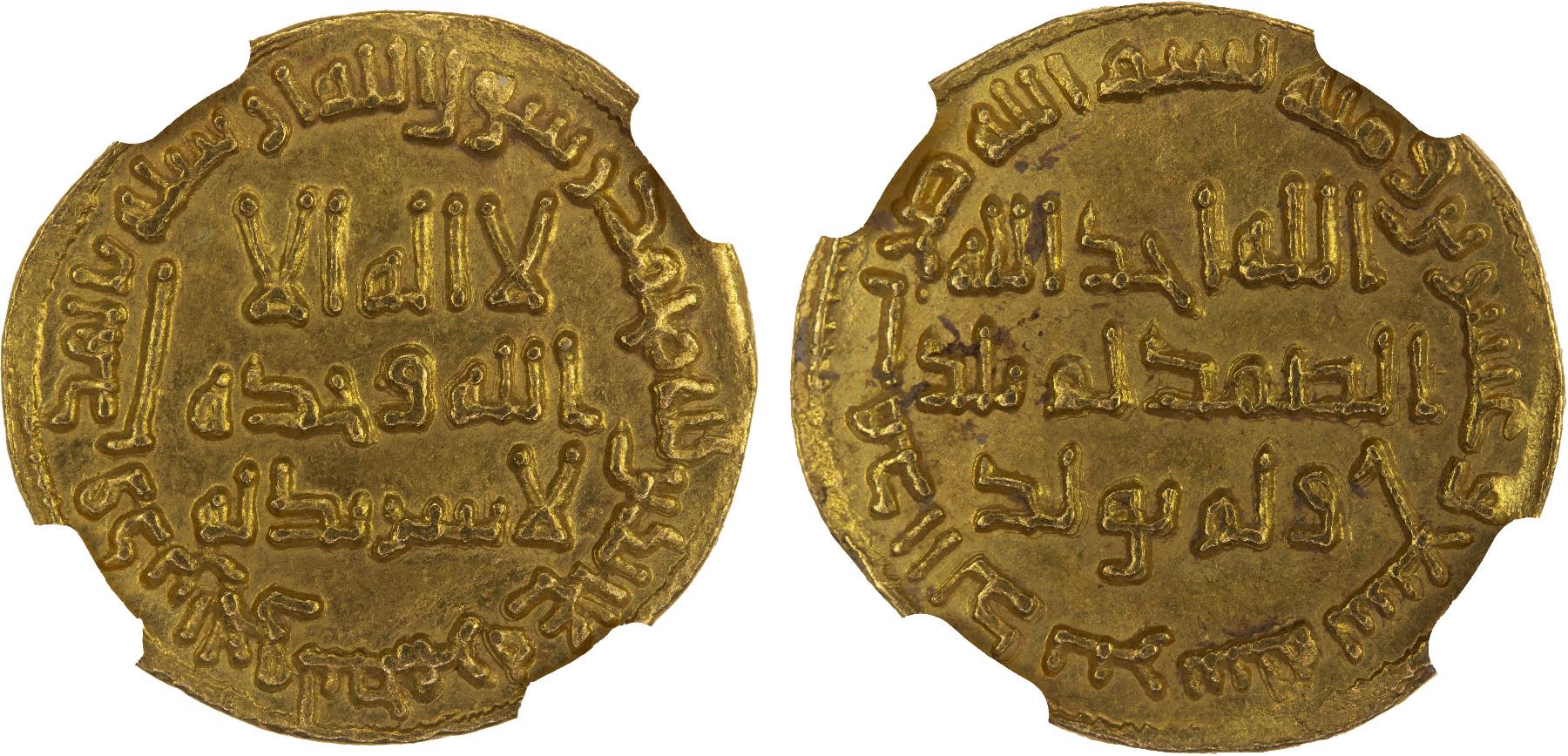 UMAYYAD: Marwan II, 744-750, AV dinar (4.26g), NM (Dimashq), AH129, A-141, wonderful strike, NGC graded lustrous MS62.