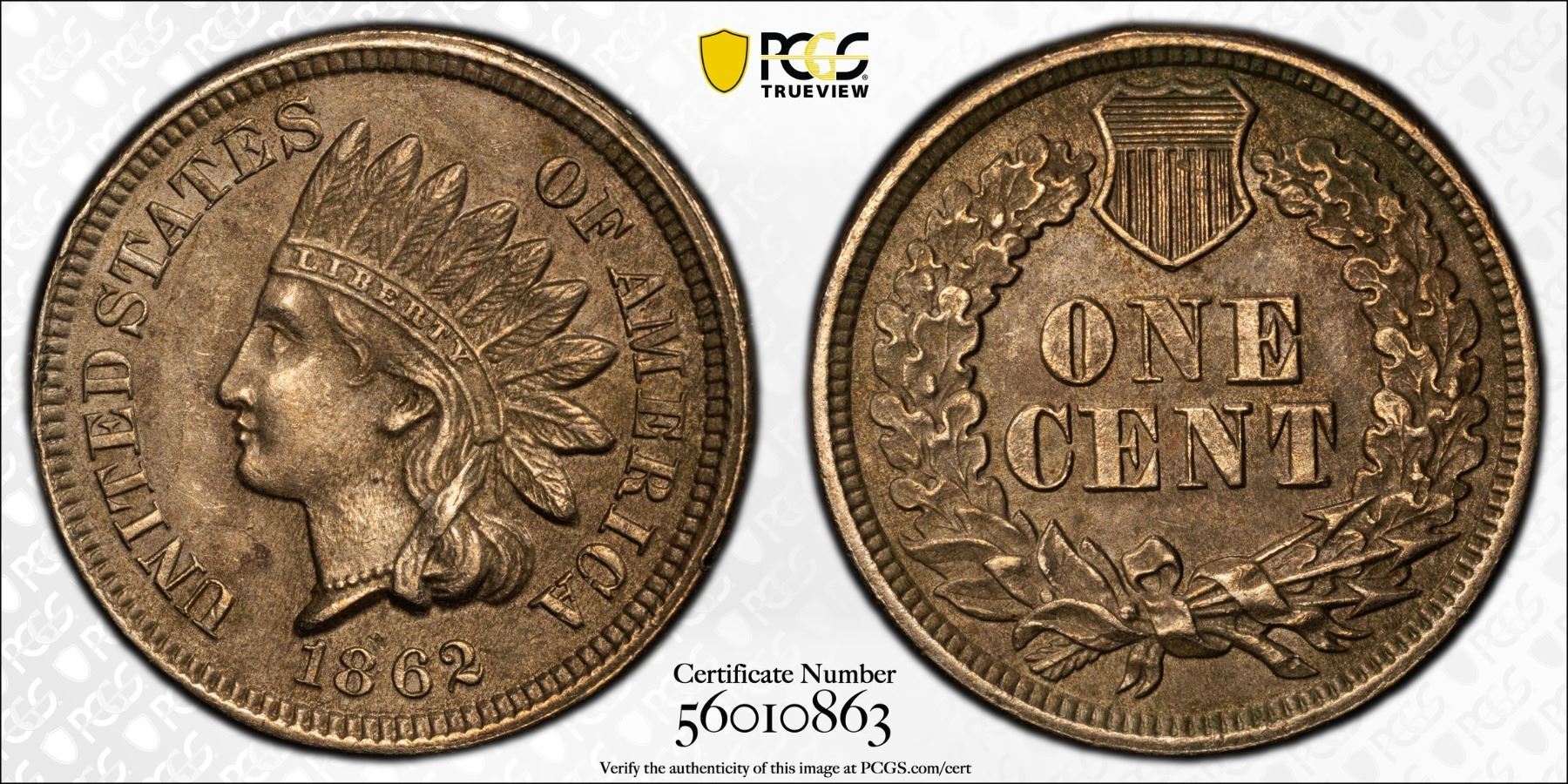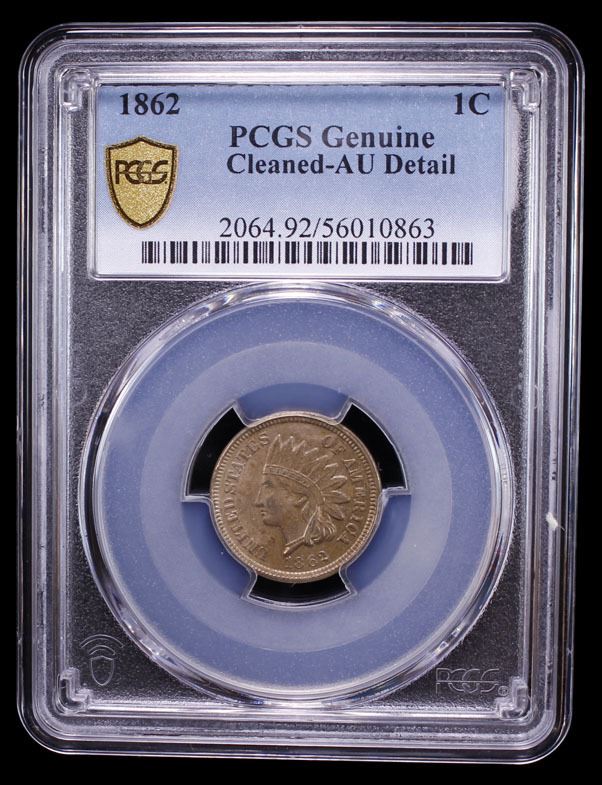 UNITED STATES: 1 cent, 1862, KM-90, Indian Head type, cleaned, PCGS graded AU details, ex Robert A. Rosenfeld Collection.