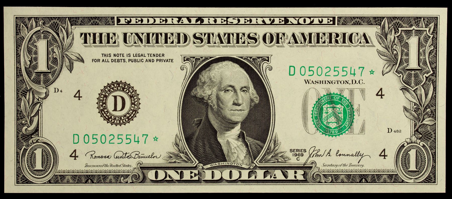 UNITED STATES: 1 dollar, 1969-C, Fr-1906-D*, Federal Reserve star note, Cleveland Federal Reserve Bank, Choice UNC.