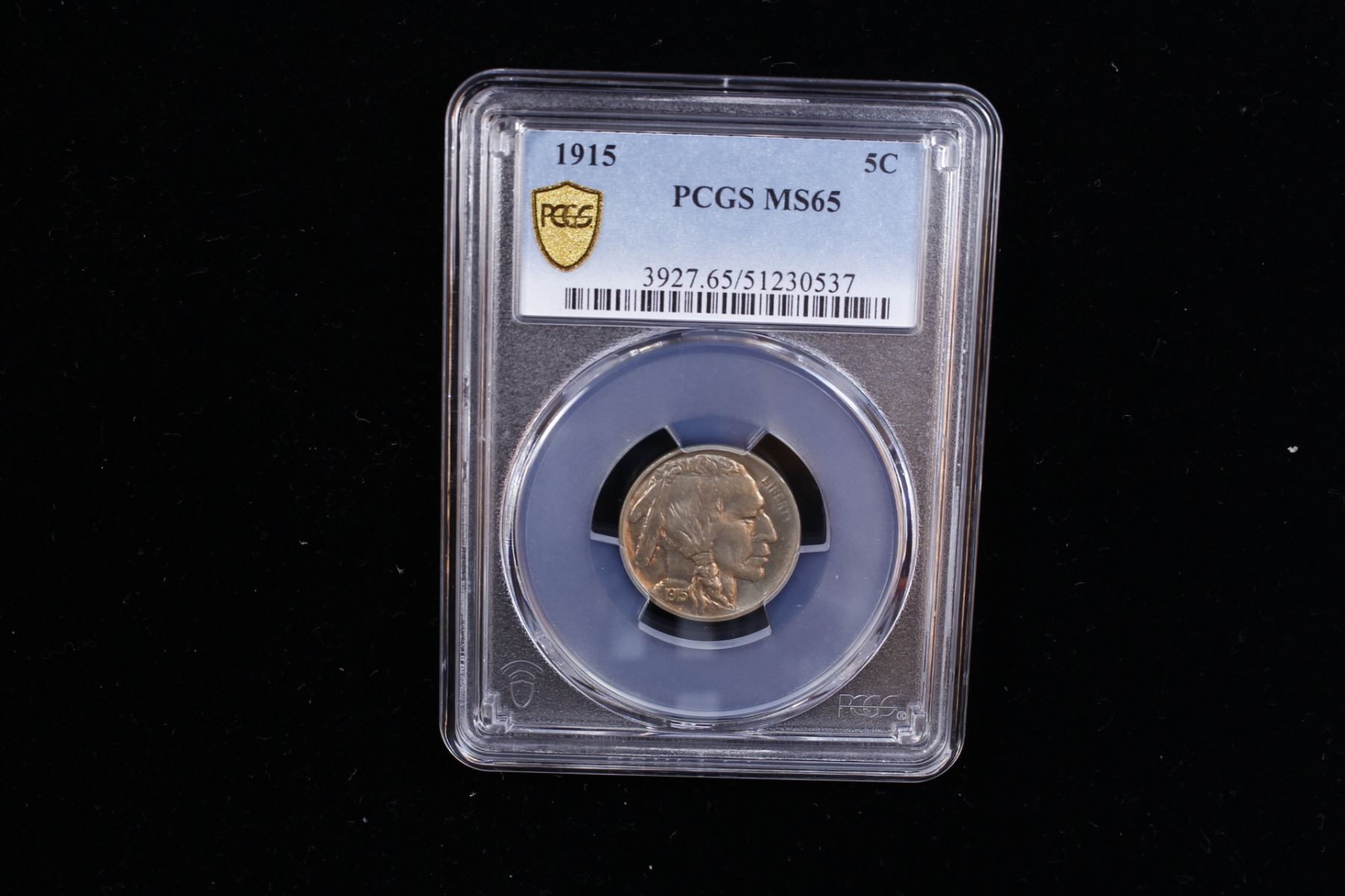 UNITED STATES: 5 cents, 1915, KM-133, Buffalo type, a superb mint state example! PCGS graded MS65. The 1913-S Type 2 Buffalo nickel is one of the key dates in the series. It is the third lowest mintage and as such is highly desirable in circulated grades. In fact, only the 1916 double die and 1918/7-D are worth more in circualted grades. Gem MS65 examples are only occasionally available.