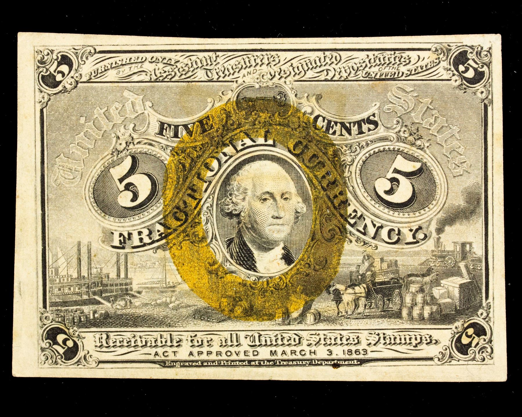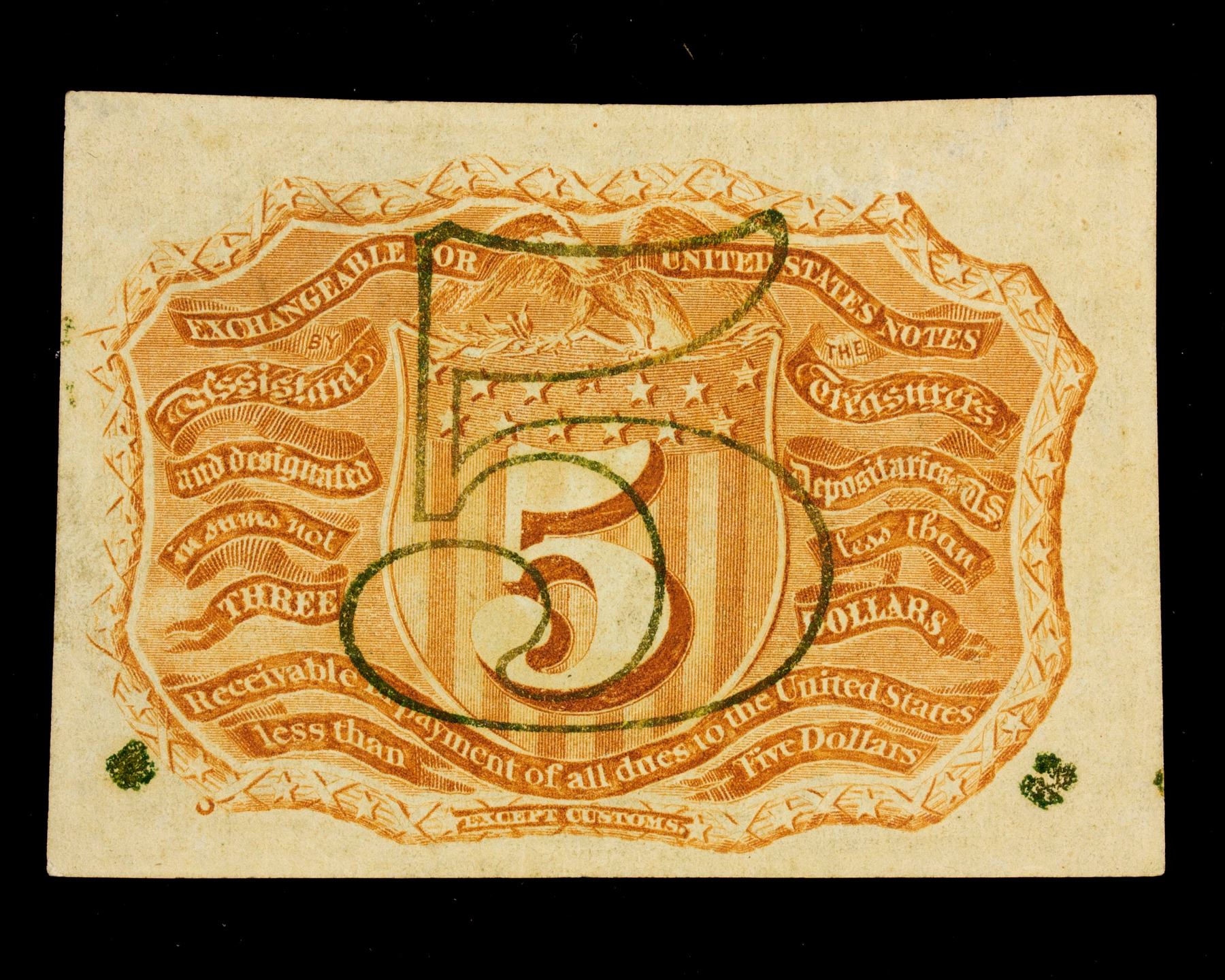 UNITED STATES: 5 cents, 3.3.1863, Pick-101b, Fr-1233, with overprint "18-63" on back, Unc, ex Dr. Robert A. Rosenfeld Collection.