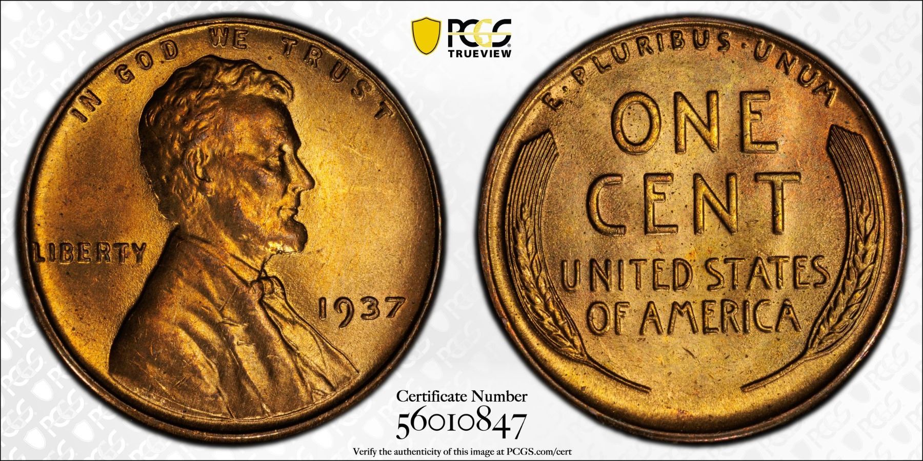 UNITED STATES: AE cent, 1937, KM-132, Lincoln type, a fantastic quality example! PCGS graded MS66 RB.