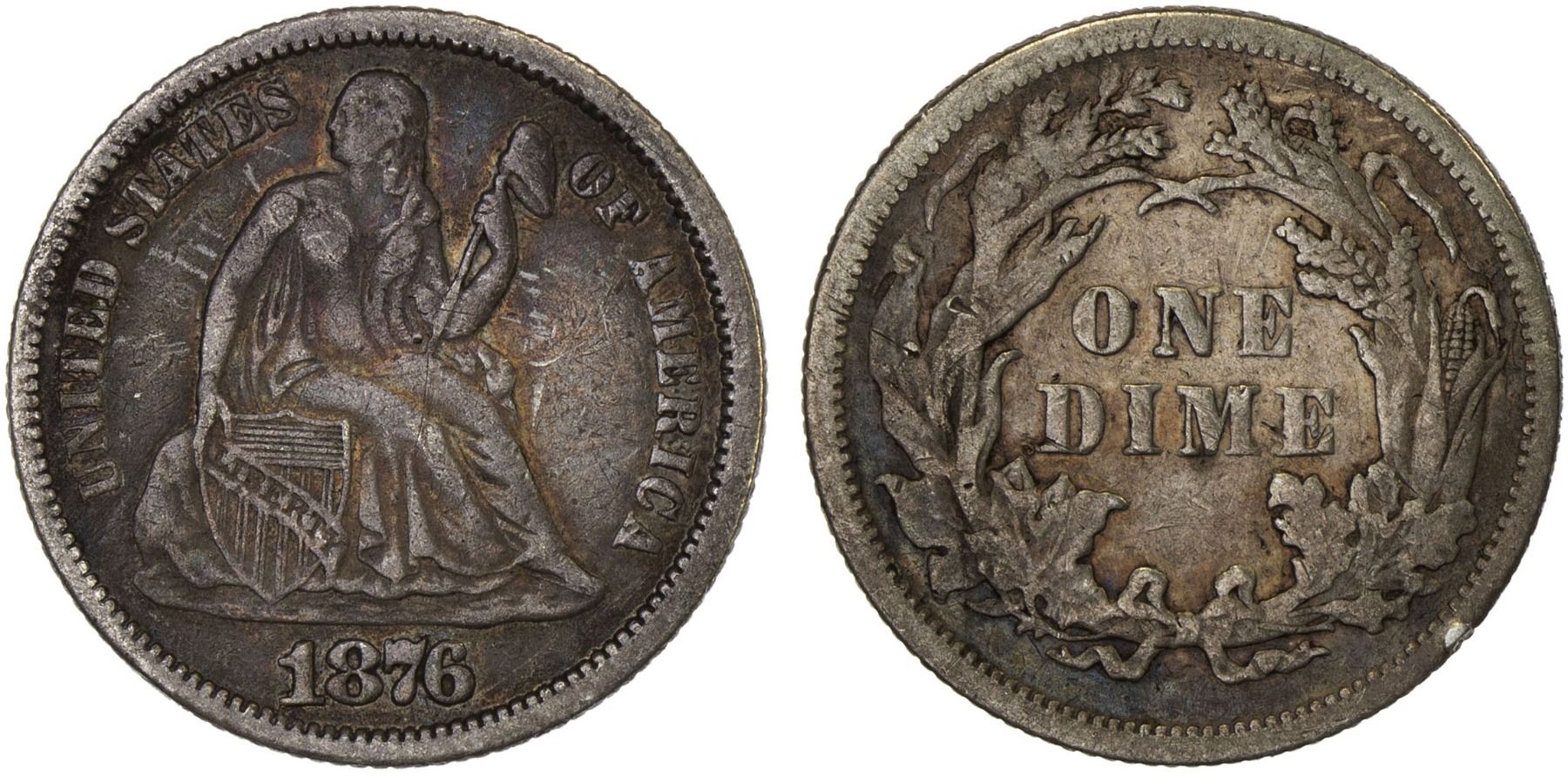 UNITED STATES: AR 10 cents, 1876, KM-A92, Liberty Seated type, VF-XF.