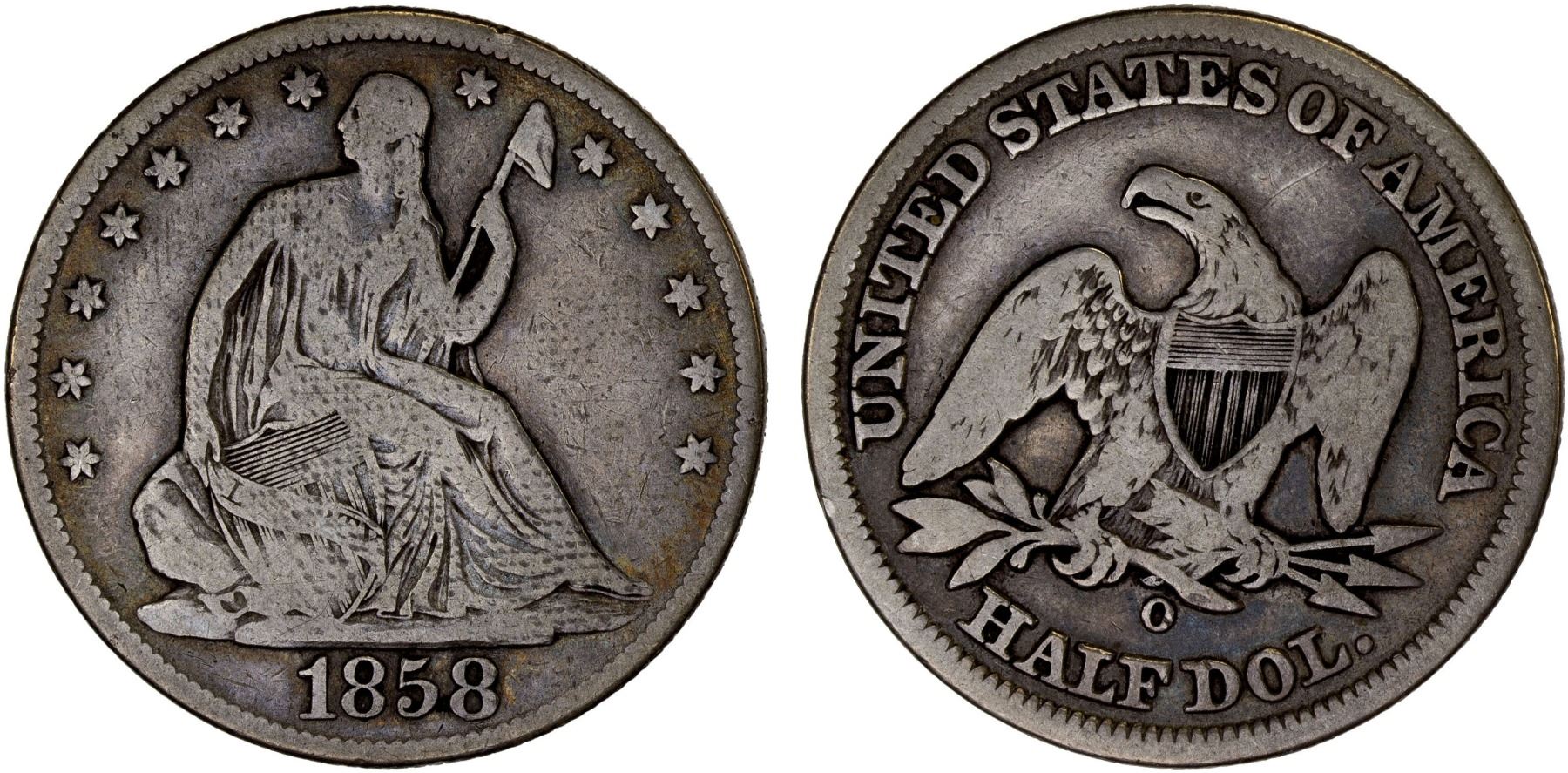 UNITED STATES: AR 50 cents, 1858-O, KM-A68, Seated Liberty type, Fine.