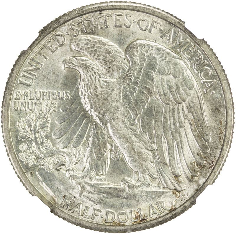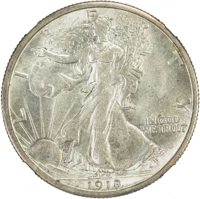 UNITED STATES: AR 50 cents, 1918-S, NGC graded MS62, Walking Liberty type.