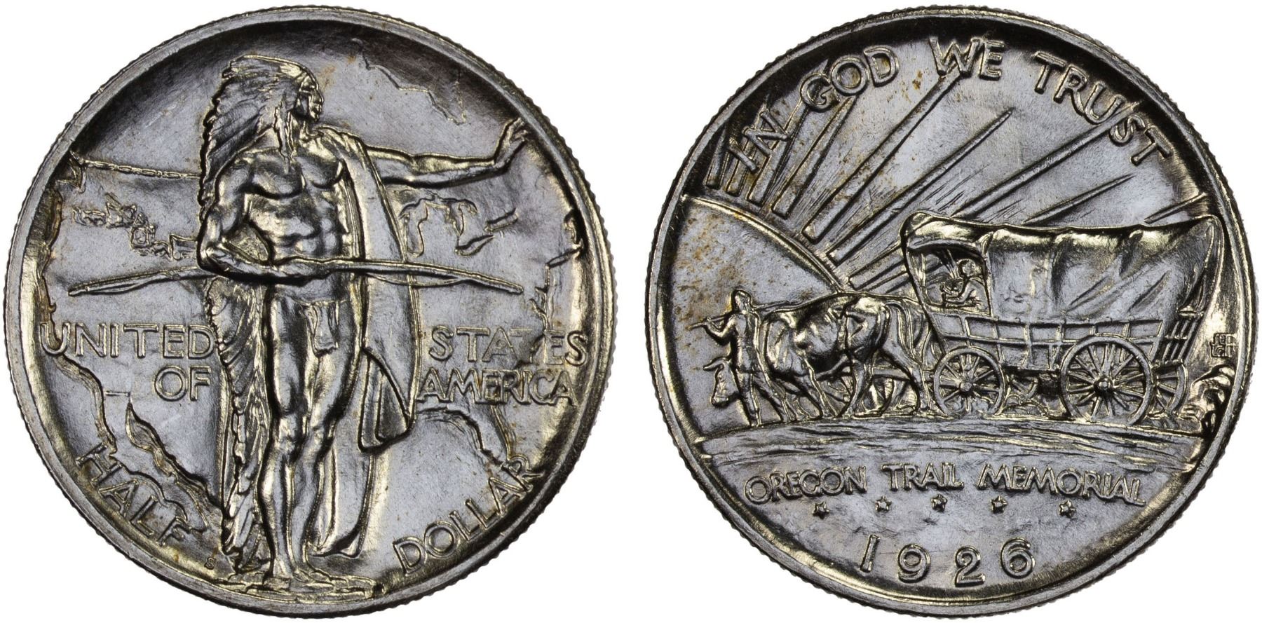 UNITED STATES: AR 50 cents, 1926-S, KM-159, Oregon Trail Memorial, very lustrous, Unc.