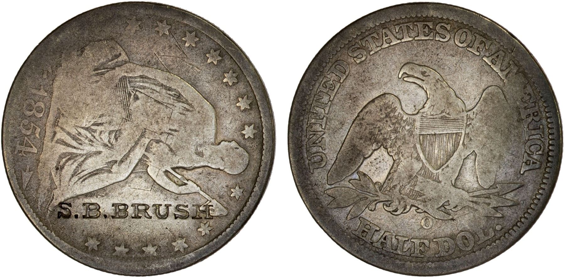 UNITED STATES: AR counterstamped 50 cents, ND (1854-O), counterstamped S. B. Brush, VG.