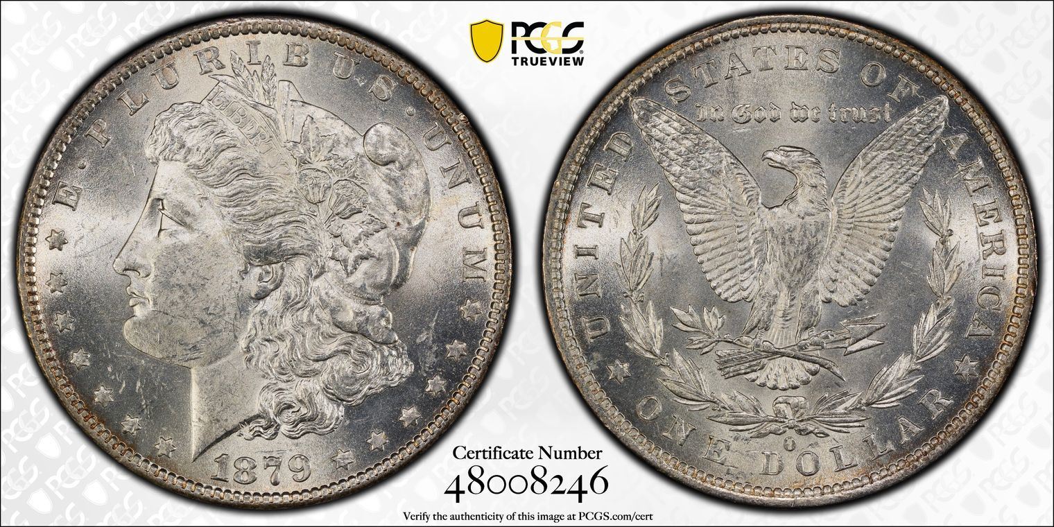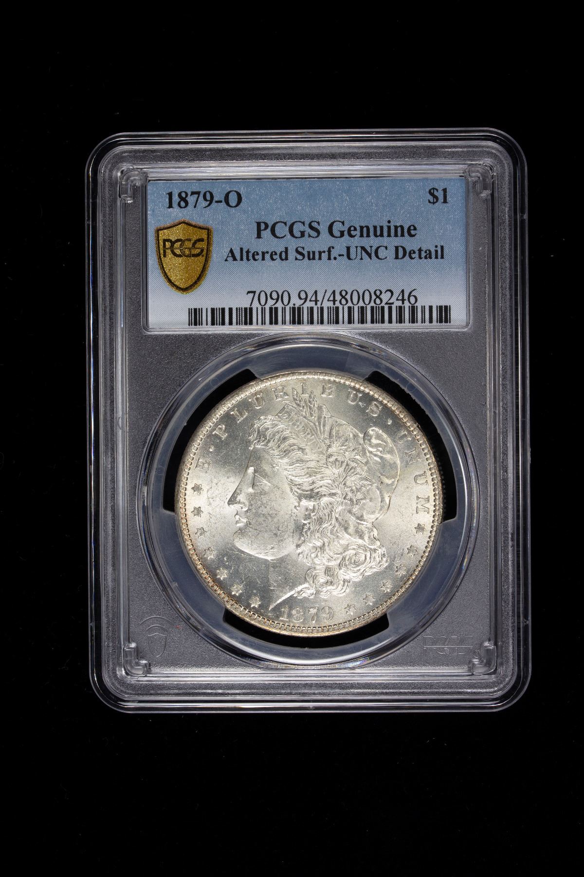 UNITED STATES: AR dollar, 1879-O, KM-110, Morgan type, altered surfaces, still an attractive example, PCGS graded UNC details.