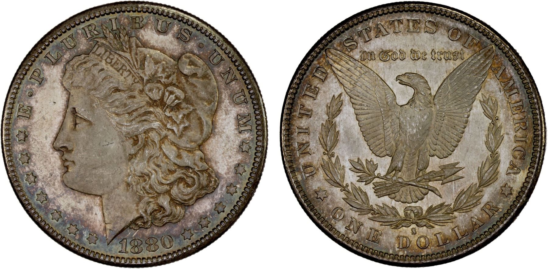 UNITED STATES: AR dollar, 1880-S, KM-110, Morgan type, a lustrous example, Unc.
