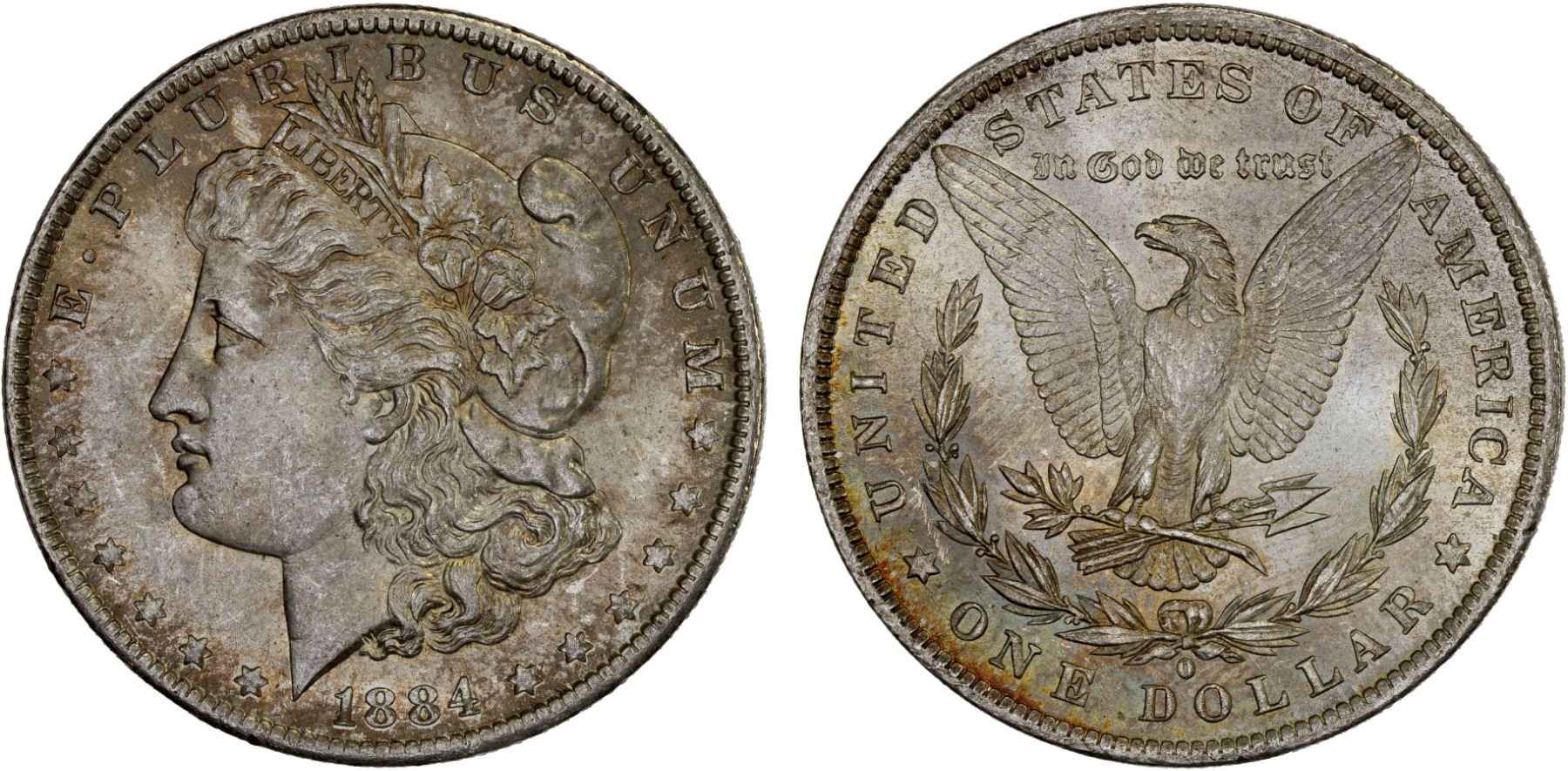 UNITED STATES: AR dollar, 1884-O, KM-110, Morgan type, a lustrous example, Unc.