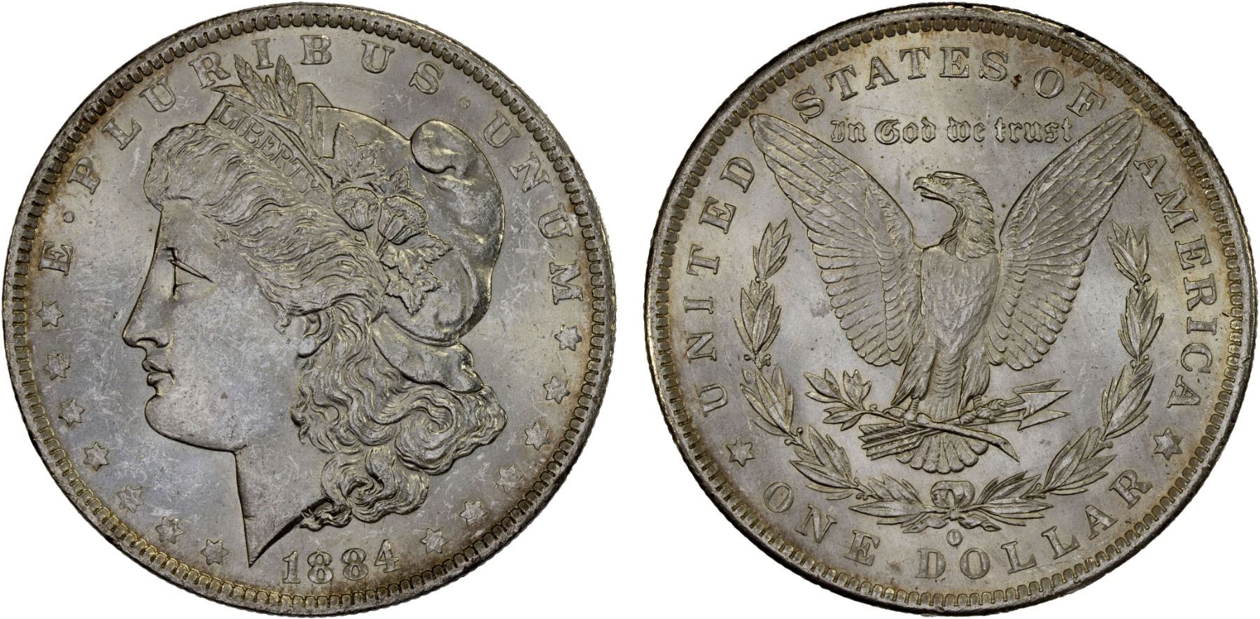 UNITED STATES: AR dollar, 1884-O, KM-110, Morgan type, a lustrous example, Unc.