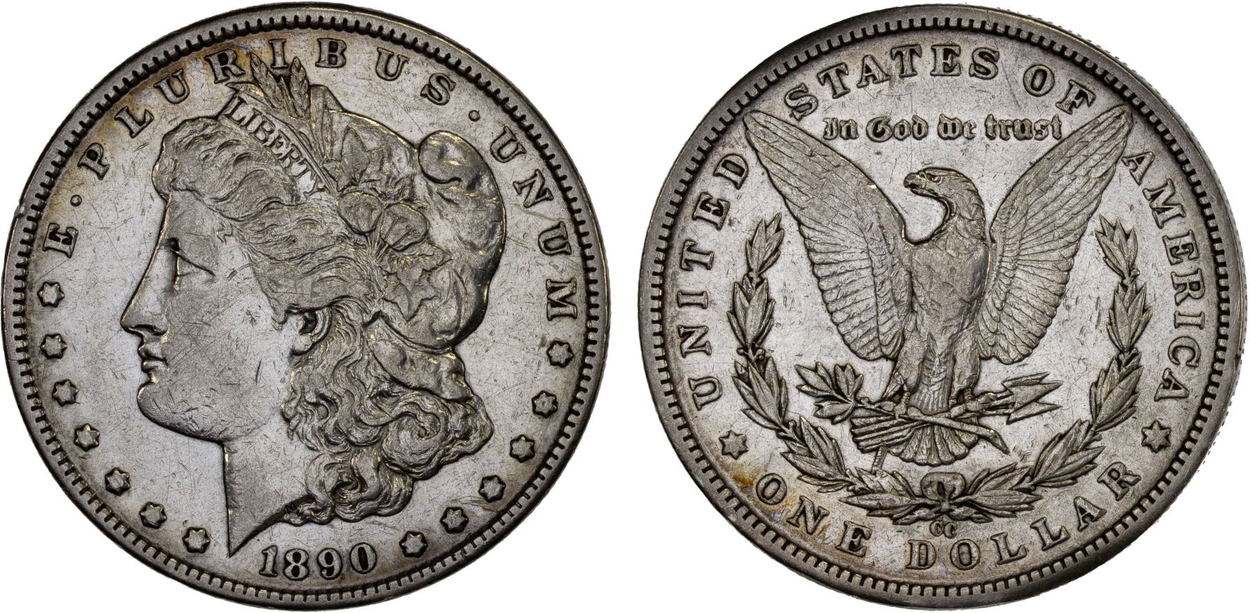 UNITED STATES: AR dollar, 1890-CC, KM-110, Morgan type, cleaned, VF.