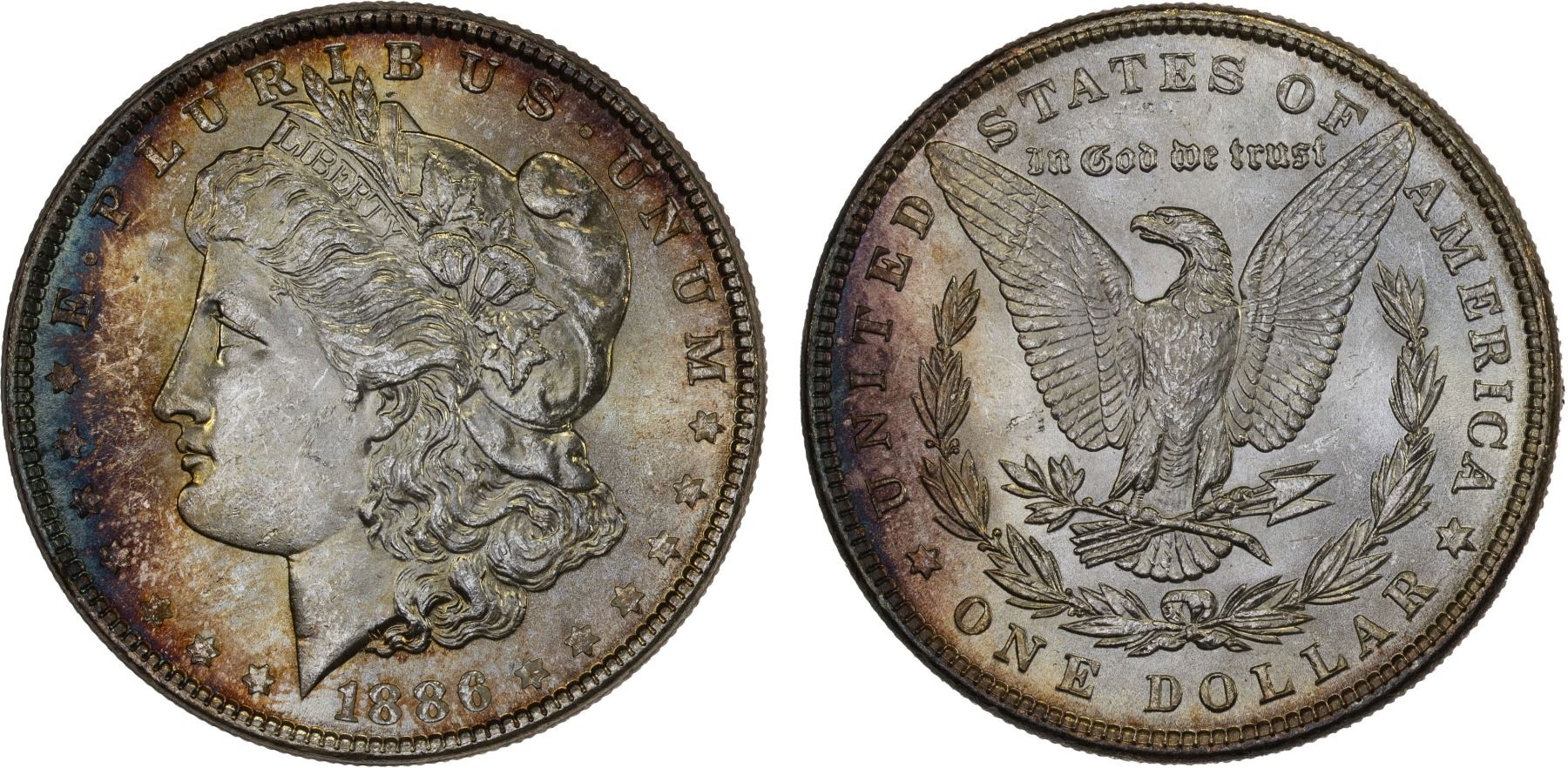 UNITED STATES: AR dollar (26.73g), 1886, KM-110, Morgan dollar type, nearly choice, light peripheral tone, Unc.