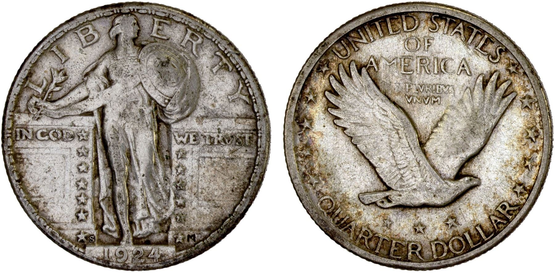 UNITED STATES: AR quarter, 1924-S, KM-145, Standing Liberty type, better date/mintmark, XF.