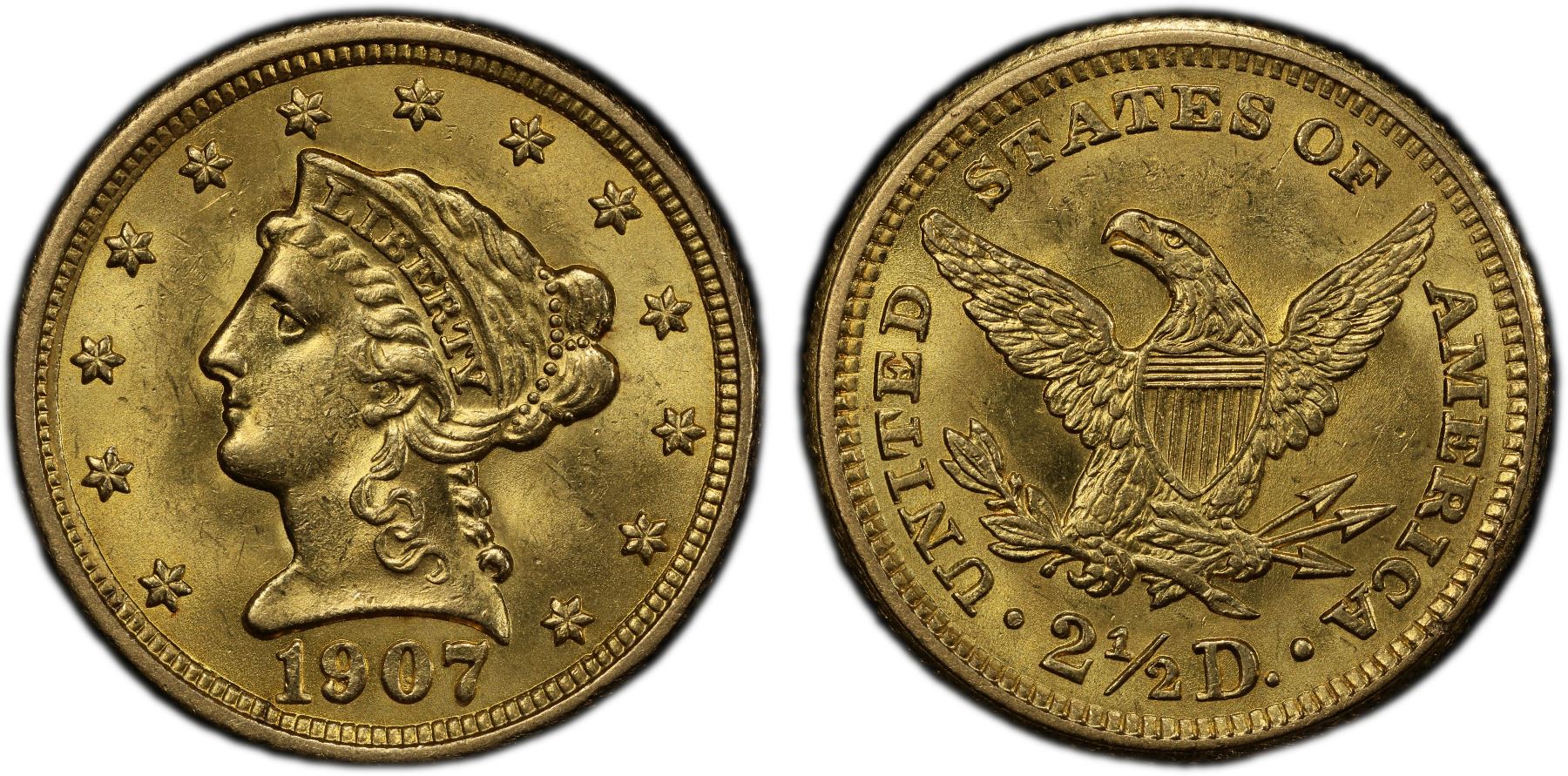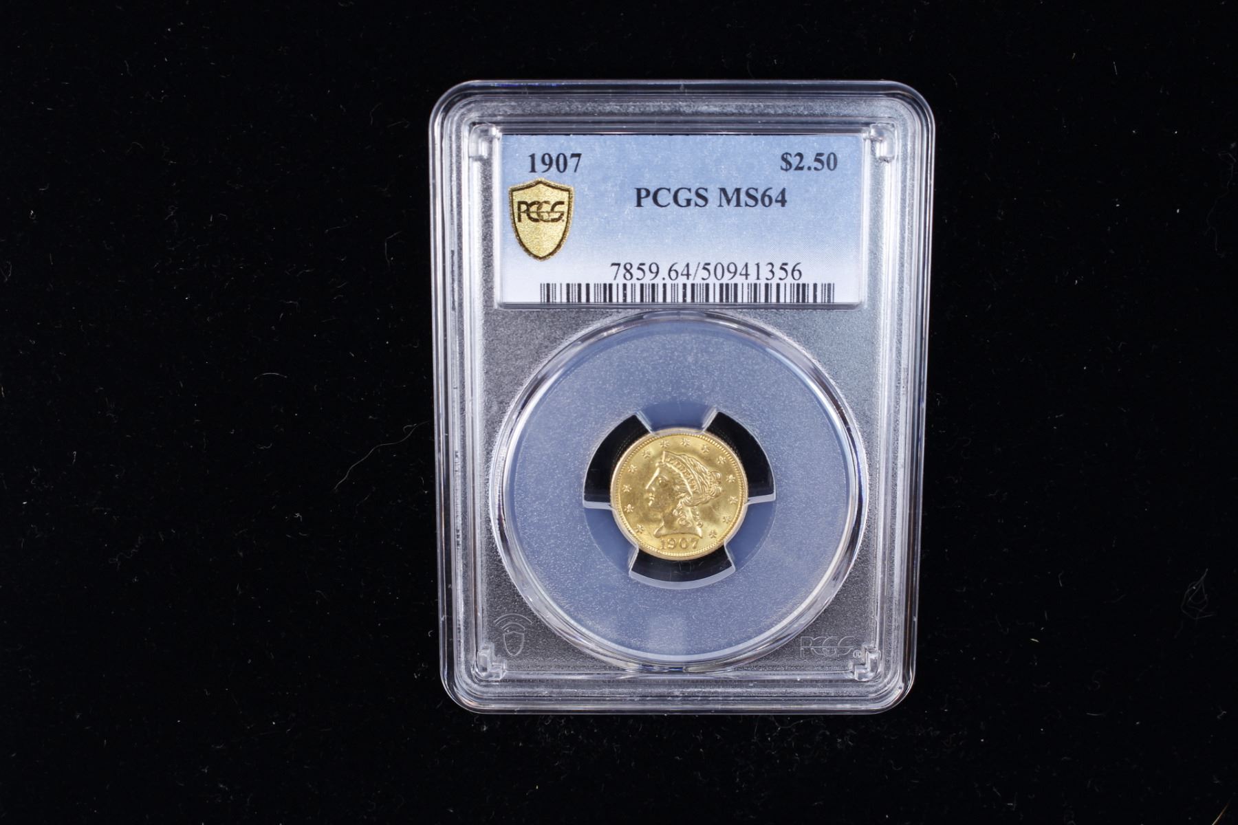 UNITED STATES: AV 2½ dollars, 1907, KM-72, Liberty Head type, a wonderful lustrous mint state example! PCGS graded MS64.