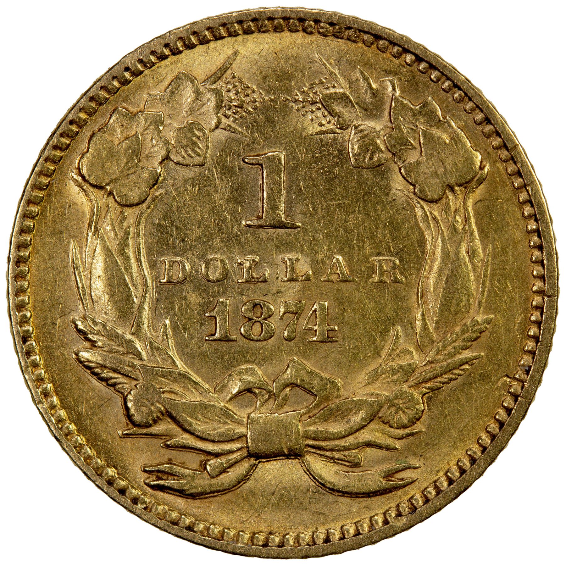 UNITED STATES: AV dollar, 1874, KM-86, Type III Indian Head, light hairlines, EF.