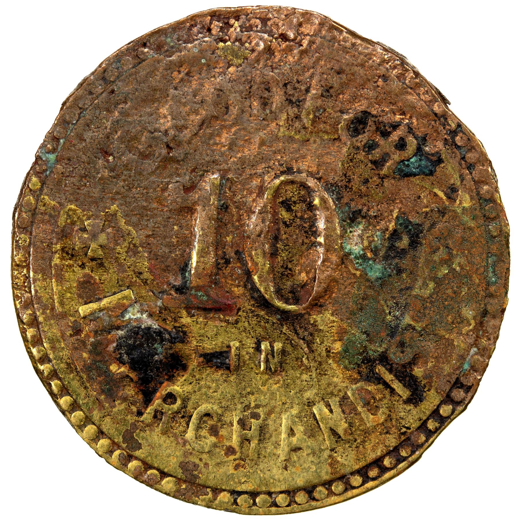 UNITED STATES: Alcatraz Island, CA good for 10¢ prison token, Zara-CA-4, 25mm brass token for Alcatraz Prison, POST EXCHANGE / ALCATRAZ / ISLAND, CAL. // GOOD FOR / 10¢ / IN / MERCHANDISE, corroded, probably a dug piece, Fine, R.