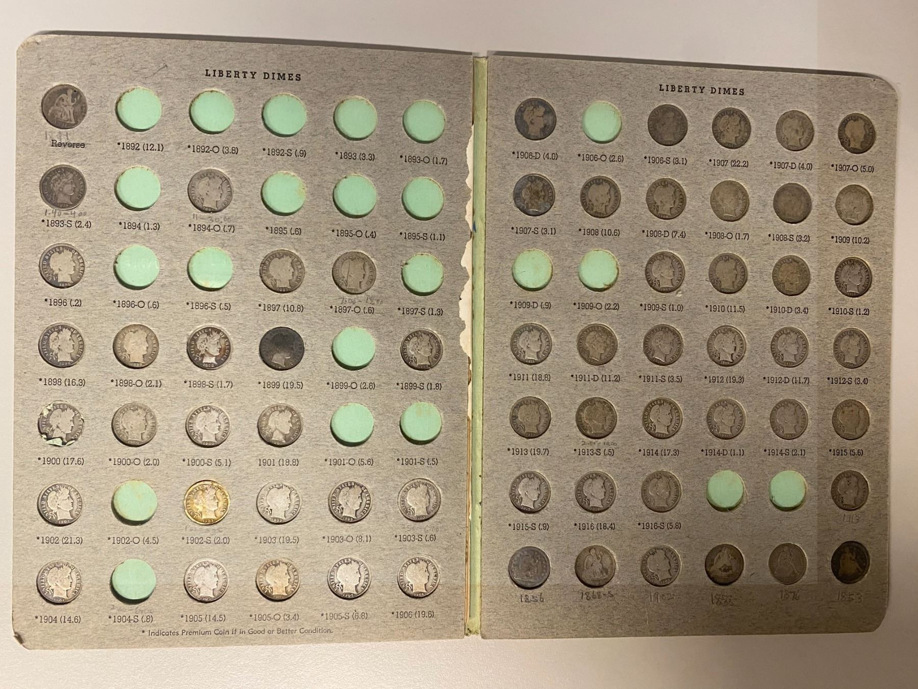 UNITED STATES: LOT of 115 coins, lot of Seated, Barber, and Mercury dimes, in various Whitman and Dansco folders; average circulated grades (including some culls), with some better, viewing recommended; retail value $1100, lot of 115 pieces.