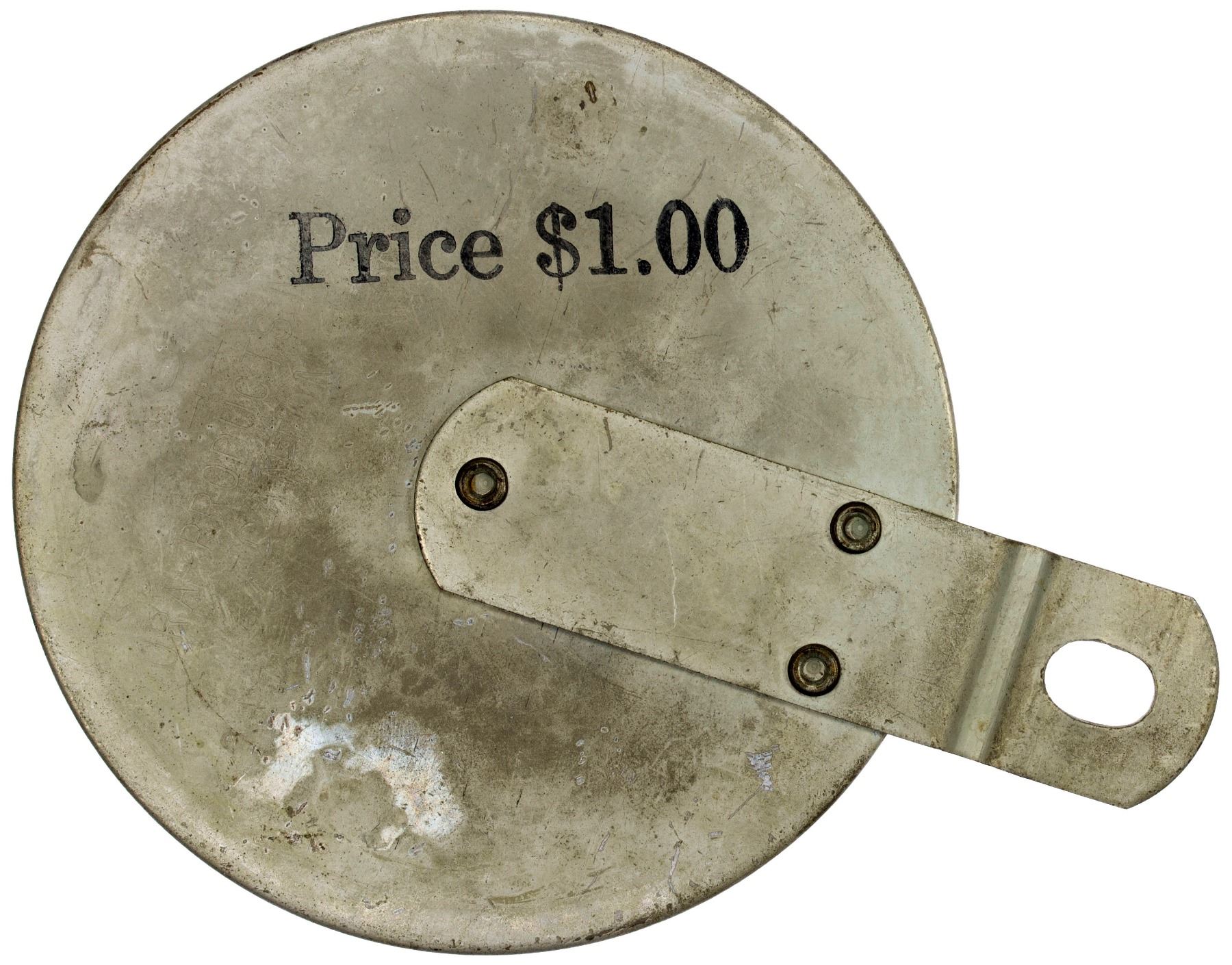 UNITED STATES: license plate topper (38.51g), 1936, 87mm license plate topper for the American Olympic Fund, round license plate attachment with red reflector background, white and blue enamel central shield with AMERICAN OLYMPIC FUND around in white, with aluminum housing and aluminum attachment below, stamped "Price $1.00" on reverse, plain edge, XF. Made to raise money for the American Olympic Fund of 1936.