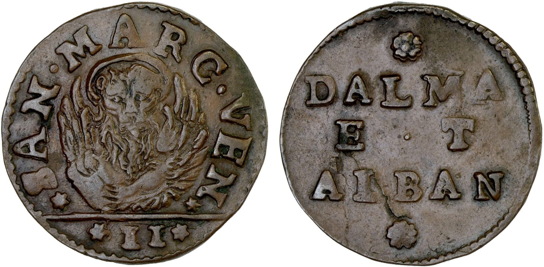 VENETIAN DALMATIA & ALBANIA: AE gazzetta (2 soldi) (7.50g), ND (1684-90), KM-5, well struck and very attractive, VF.