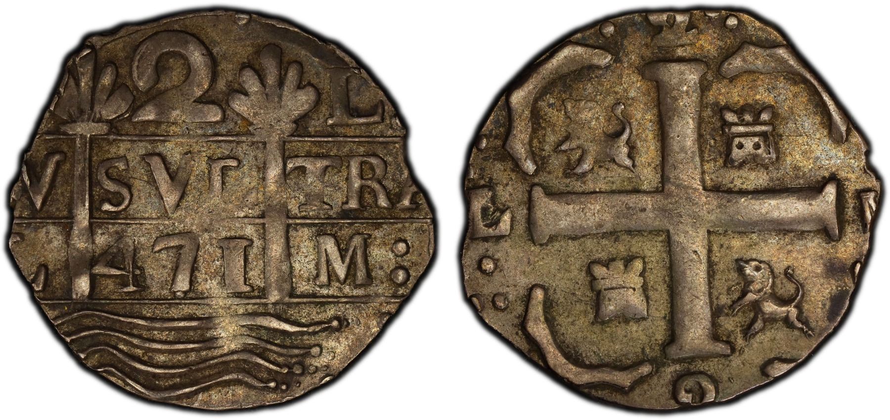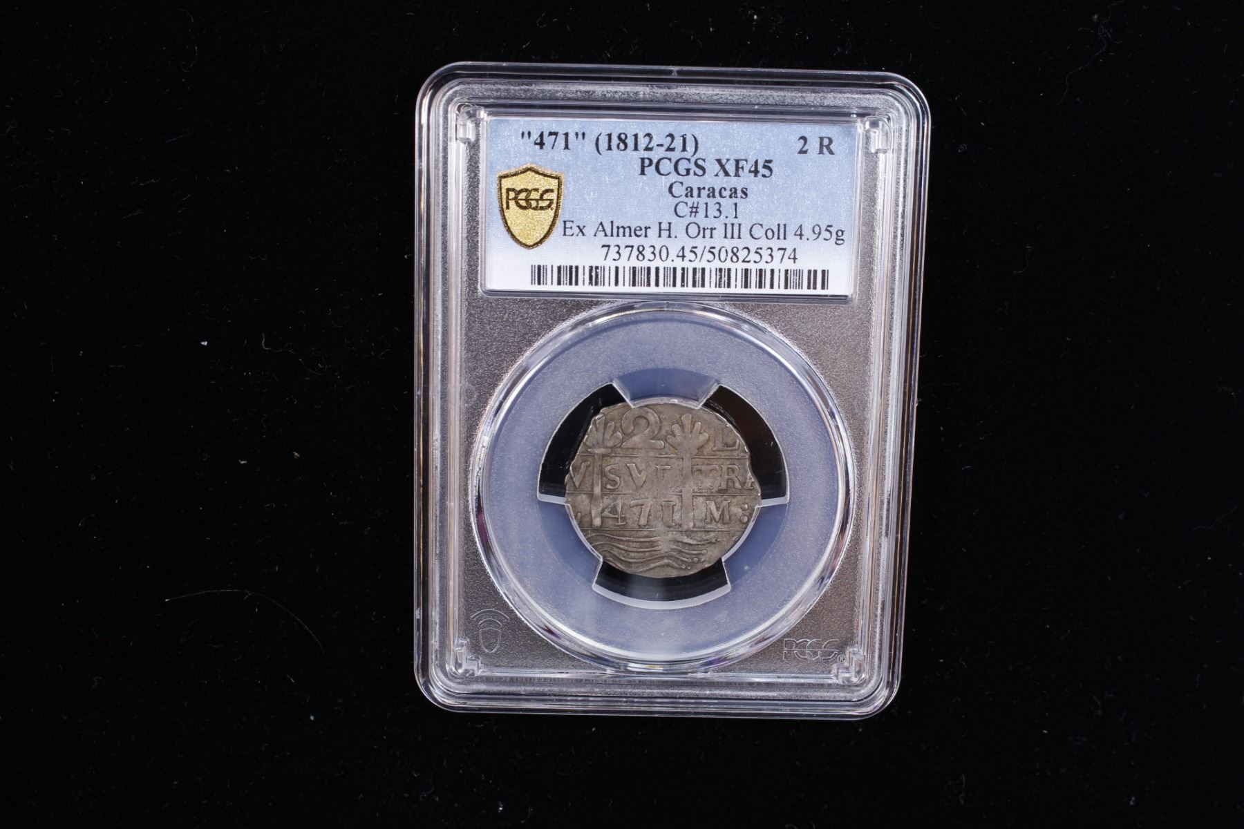 VENEZUELA: Caracas, AR 2 reales (4.95g), "471" (1812-21), Cr-13.1, cob style, attractively toned, PCGS graded EF45, ex Almer H. Orr III Collection.