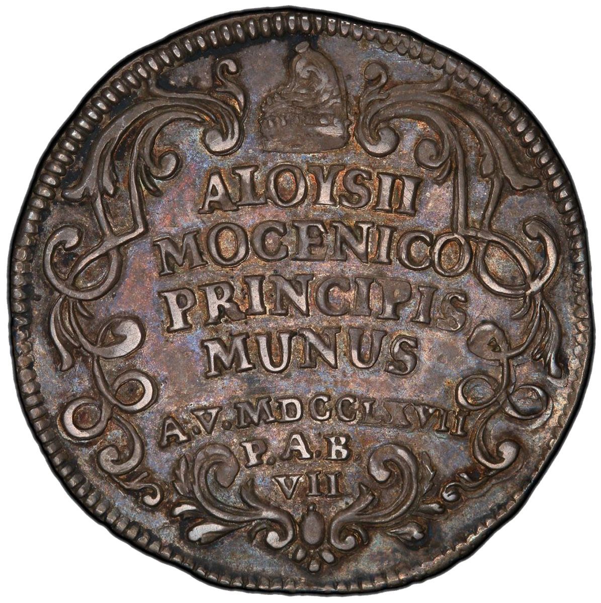 VENICE: Alvise IV Giovanni Mocenigo, 1763-1779, AR osella, 1767 year 7, Paol-250, KM-X334, lovely old cabinet toning, PCGS graded AU53.