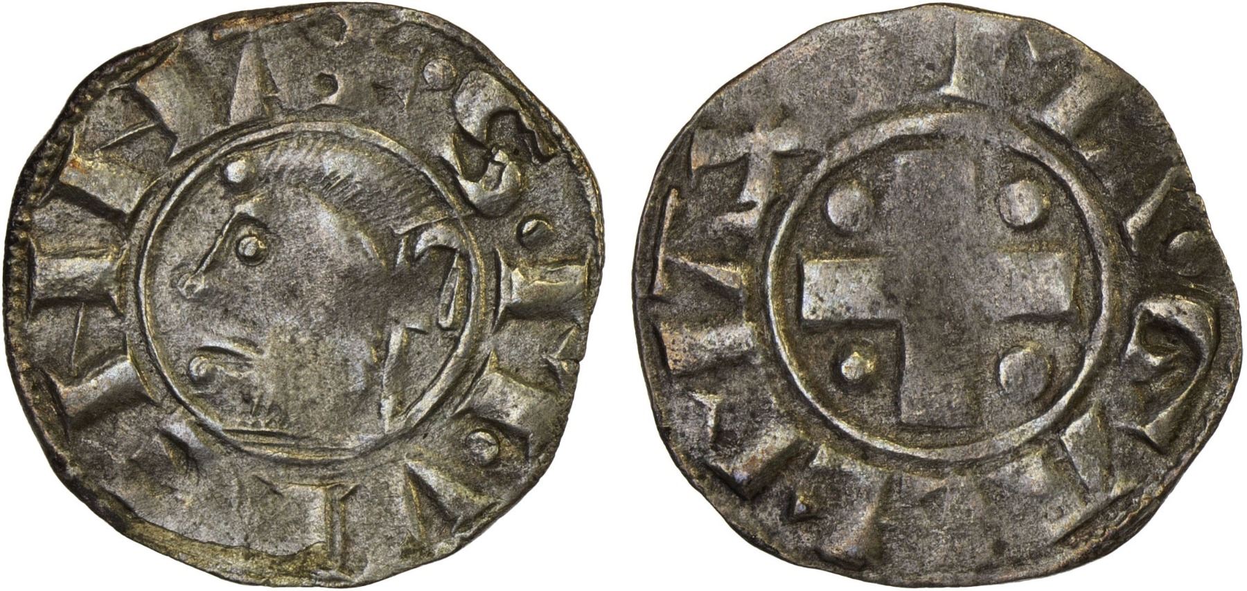 VIENNE: Anonymous bishops, 12th century, AR denier (0.85g), ND, Dup-2381v, B. 1045, differs from Dup-2381 in placement (or non-placement) of stops, VF.