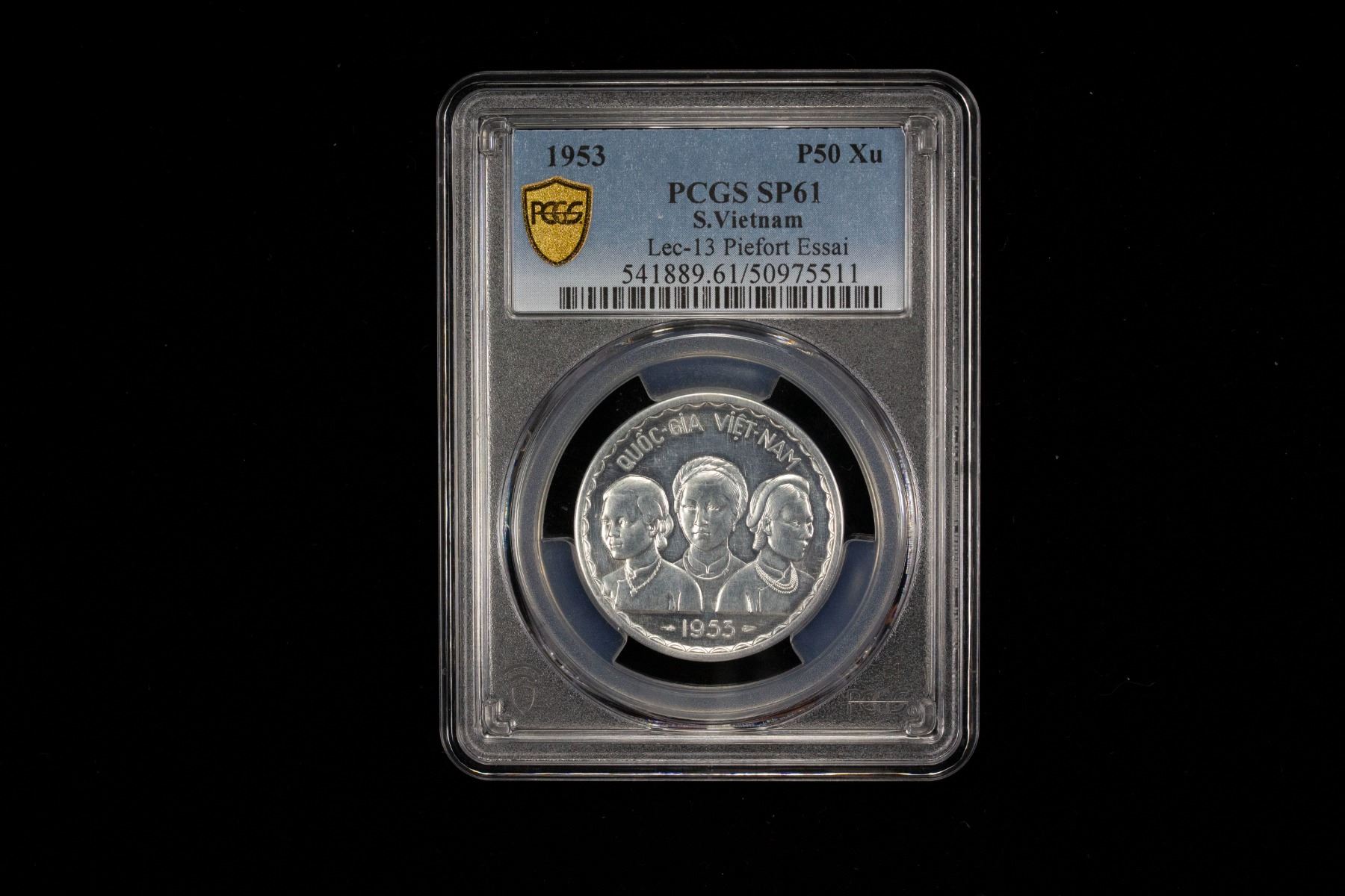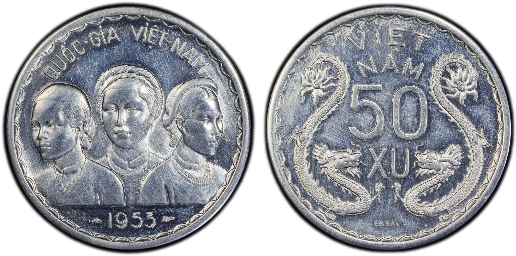 VIETNAM (South Viet Nam): Republic, pattern 50 xu, 1953, KM-PE3, piedfort (piéfort) essai issue, Specimen 61, ex Almer H. Orr III Collection.