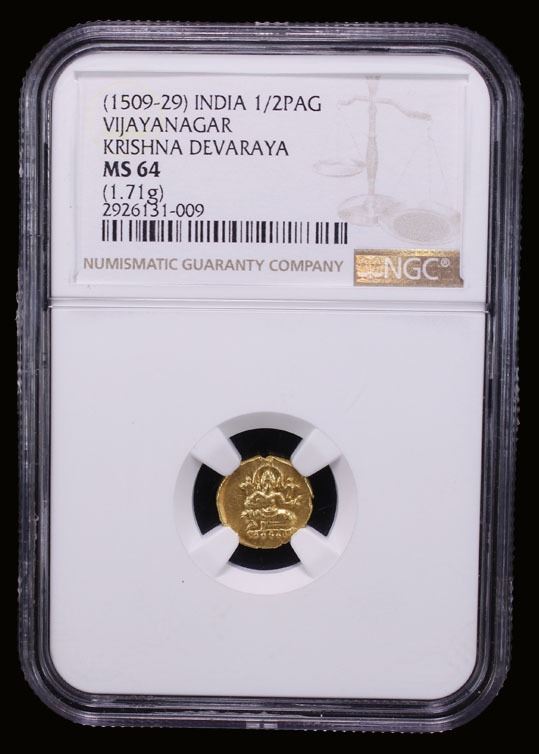 VIJAYANAGAR: Krishna Deva Raja, 1509-1529, AR 1/2 pagoda (1.71g), NGC MS64