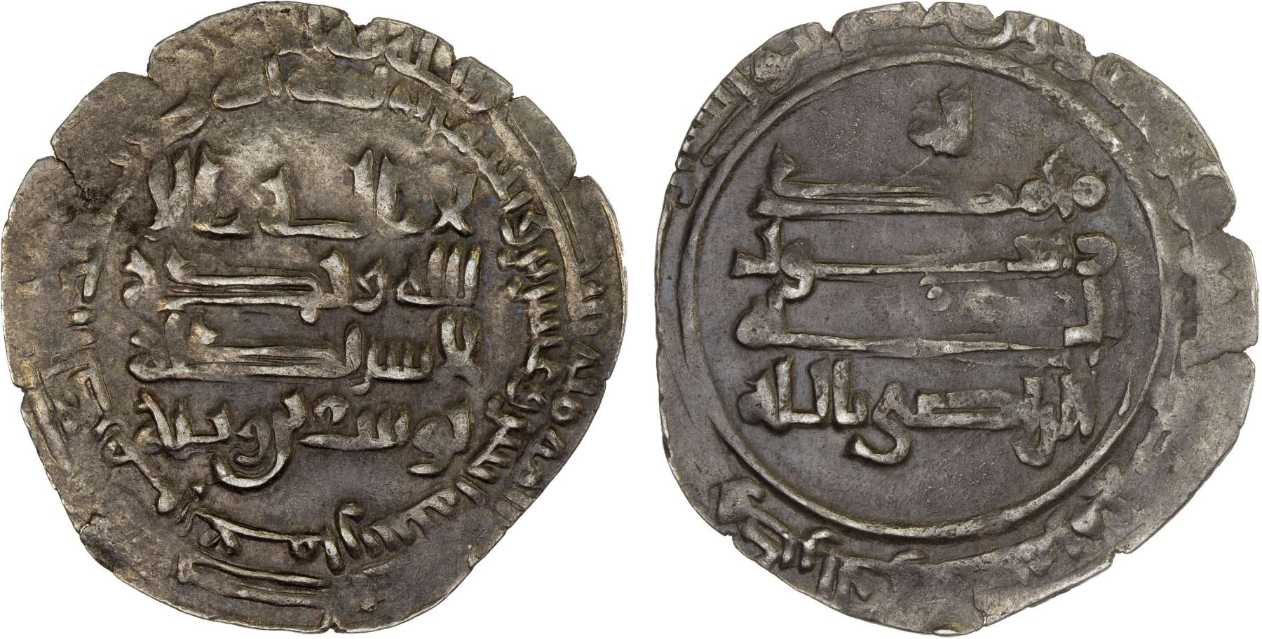WAJIHID: Yusuf b. Wajih, 925-943, AR dirham (3.03g), 'Uman (Oman), AH322, A-1160, citing the caliph al-Radi (AH322-329), without the caliphal heir, lovely example! XF.