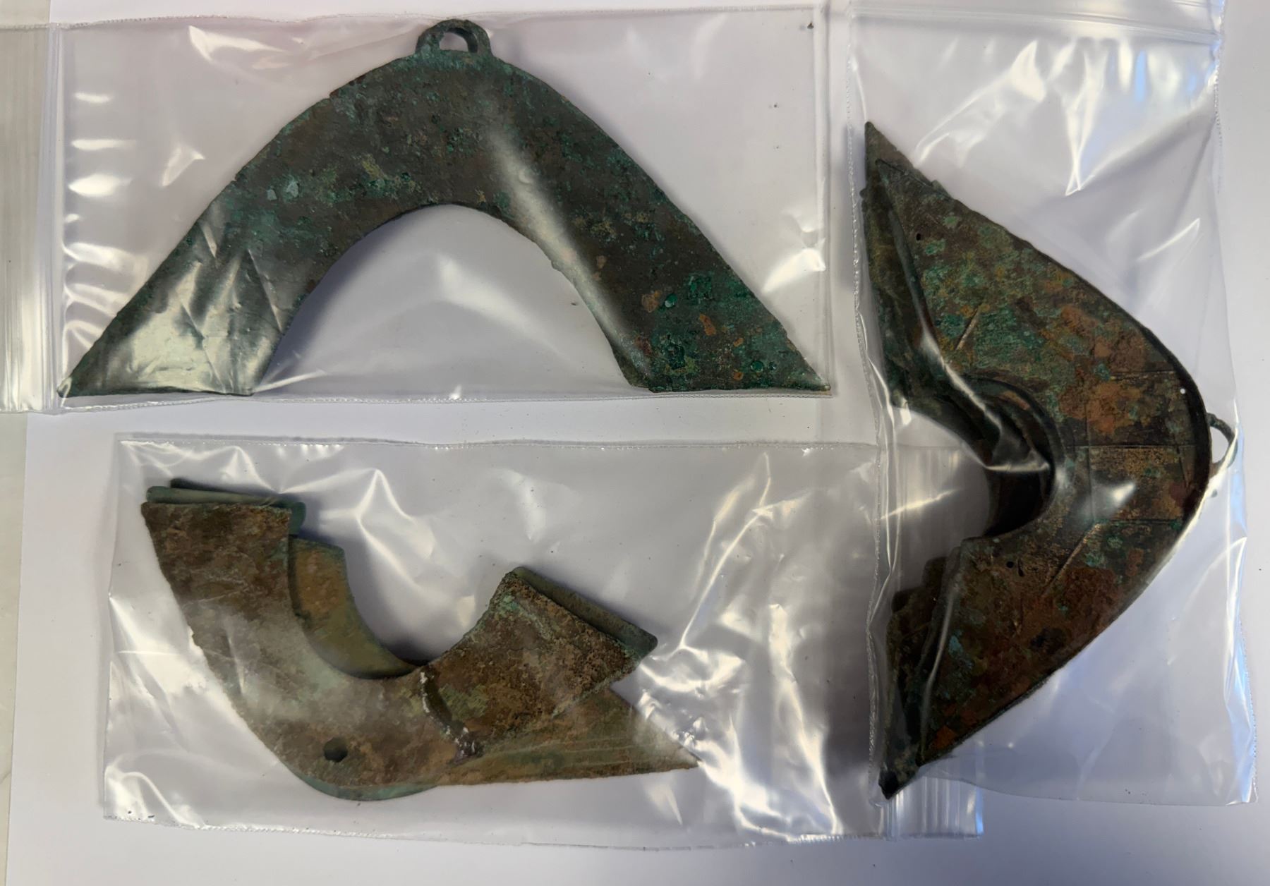 WARRING STATES: Ba & Shu States, 300-225 BC, LOT of 15 bridge money, various sizes between 9 and 15cm wide, including 8 with simple linear patterns and 7 with plain surfaces; two pieces broken and repaired, a few with small casting holes, two examples with some original brassy patina; retail value $600, lot of 15 pieces, ex Dr. Dirk Löer Collection. Though colloquially known as 'bridge money,' these bronze 'bridges' are formally known only as funerary objects designed to imitate the stone chimes of the bianqing. Bridge Money pieces have now been dated to circa 306-221 BC and are accepted by many--but not all--Chinese numismatists as actual coins of Ba and Shu States during the Warring States period.